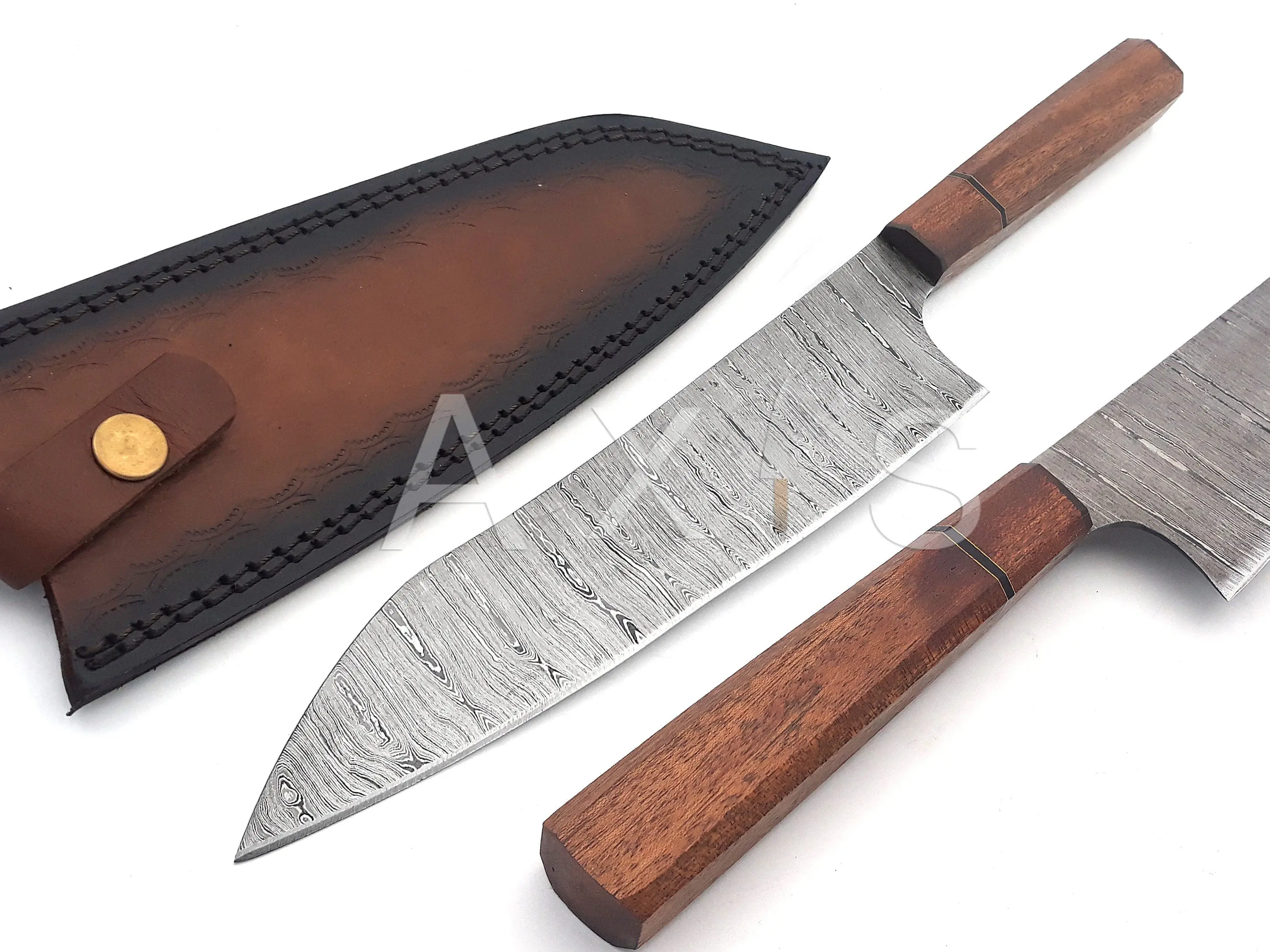 Kitchen Knife made with Damascus Steel with Twisted Pattern