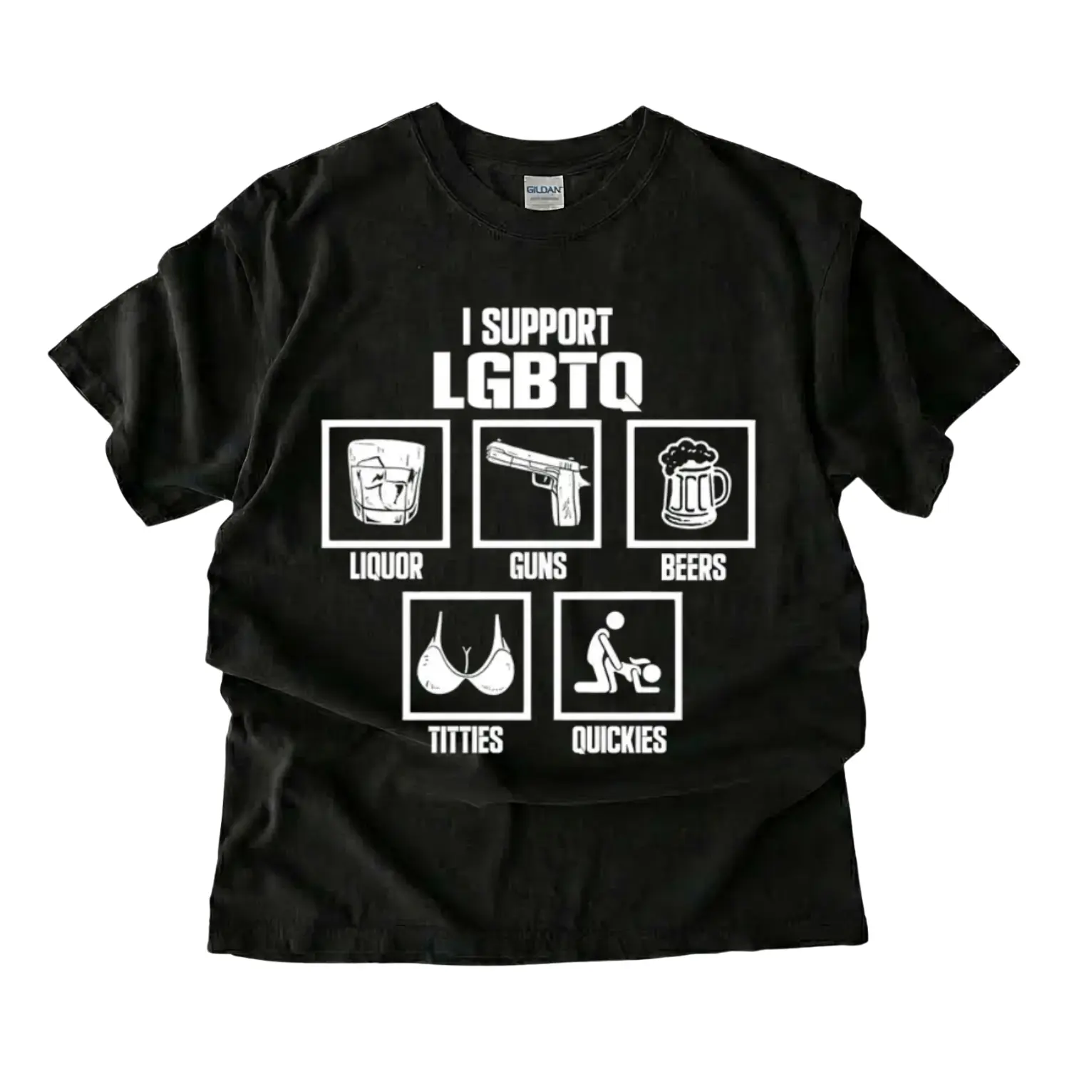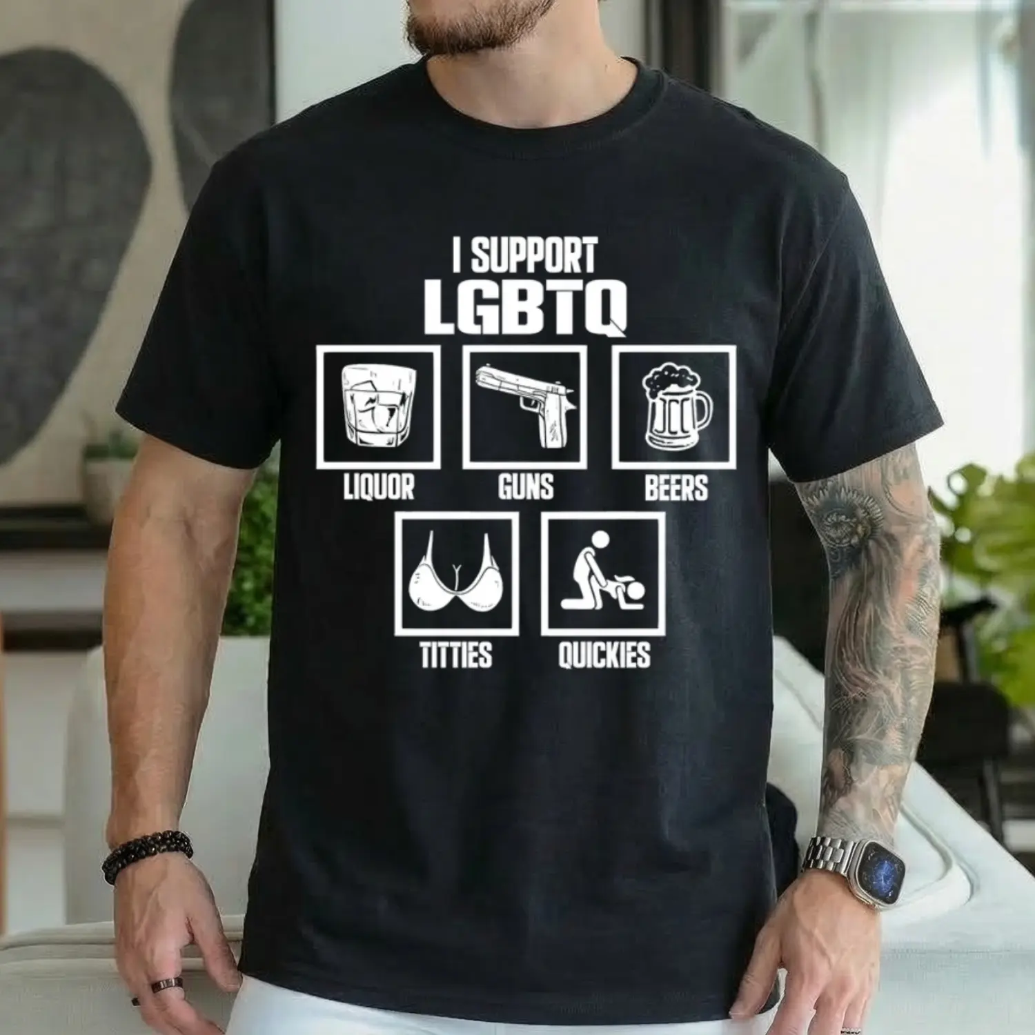 I Support LGBTQ Shirt, Liquor, PewPew, Beers, Tweeties, Quickies Tee, Funny Meme Shirt, 100% Cotton Unisex Shirt, Trendy Shirt Streetwear WomenswearI Support LGBTQ Shirt, Liquor, PewPew, Beers, Tweeties, Quickies Tee, Funny Meme Shirt, 100% Cotton Unisex Shirt, Trendy Shirt Streetwear Womenswear