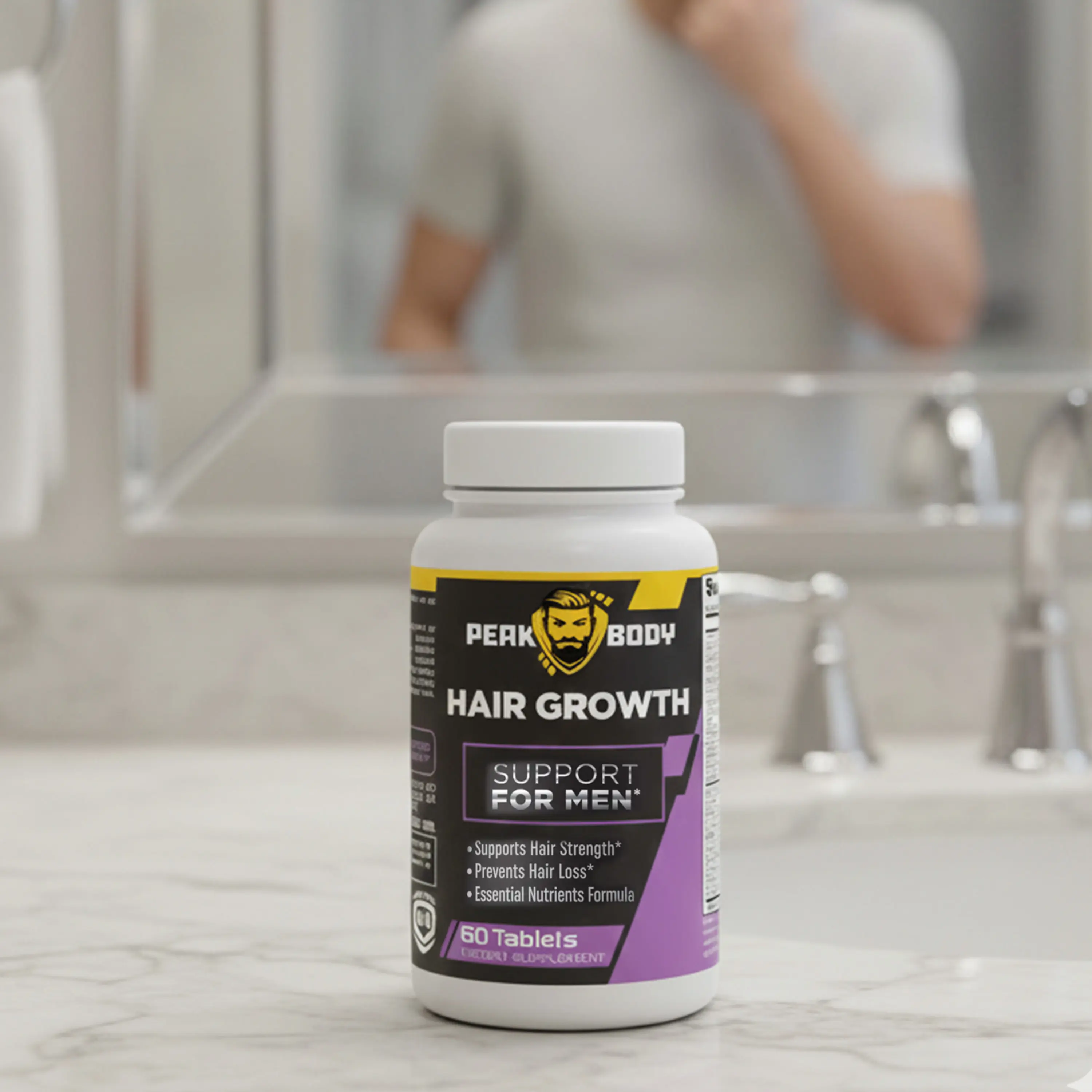 PeakBody Men’s Hair Support is a premium daily supplement formulated with a blend of essential vitamins and minerals. Designed specifically for the modern man, this formula focuses on providing the foundational nutrients needed to support healthy hair density and maintain a vibrant, well-nourished scalp from the inside out.