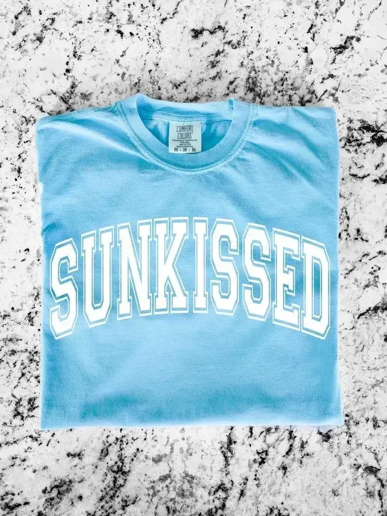 Comfort Colors Neon Sunkissed Summer Shirt for Women Cotton Fitted Tee in Various Colors Sizes S to 3XL Trendy Graphic Tee Casual Pastel