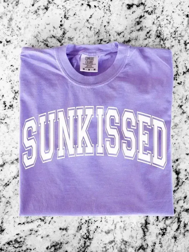 Comfort Colors Neon Sunkissed Summer Shirt for Women Cotton Fitted Tee in Various Colors Sizes S to 3XL  Trendy Graphic Tee Casual Pastel