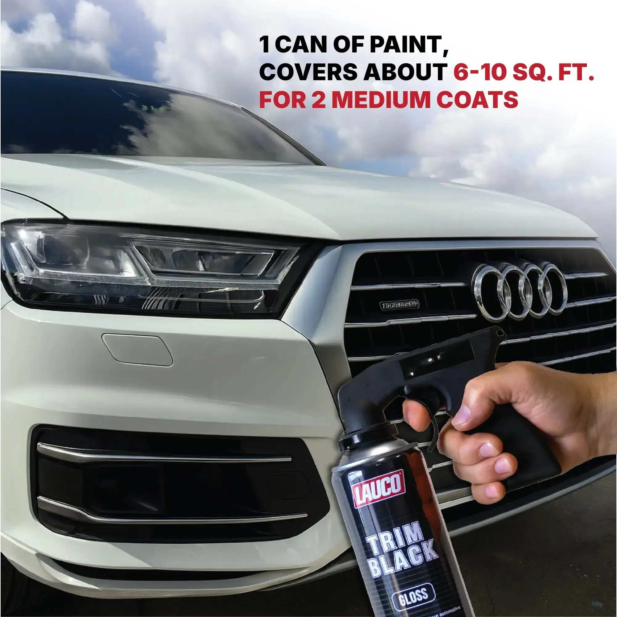 The Lauco Trim Black Gloss Aerosol 13 oz delivers easy application, strong adhesion, and long-lasting OEM-style results for professional-quality trim restoration.