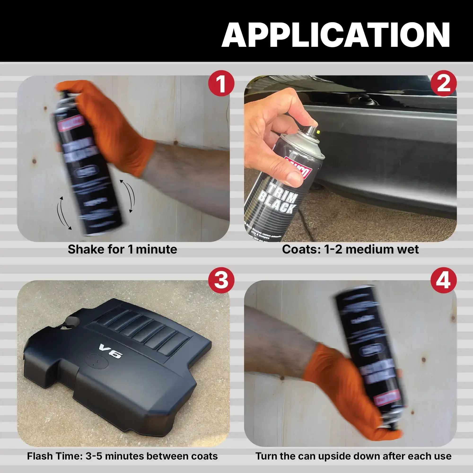 The 13 oz aerosol can provides smooth, even application and covers up to 6 sq. ft., making it easy to restore multiple trim areas with one can.
