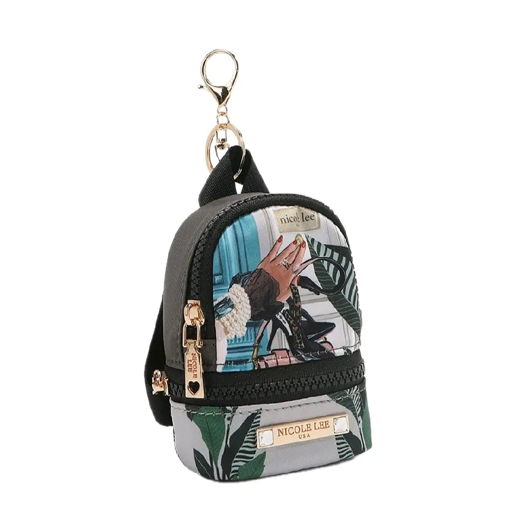 Nicole Lee Keychain Backpack with Gold-tone Hardware, Zipper Closure, and Decorative Bottom Wrap-around Zipper