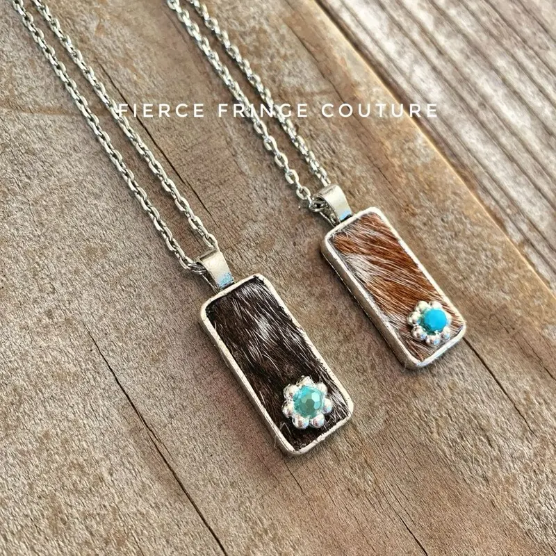 The Cowhide Daisy Necklace is a one-of-a-kind piece, reflecting the beauty of natural materials. Cowhide print may vary from photo.