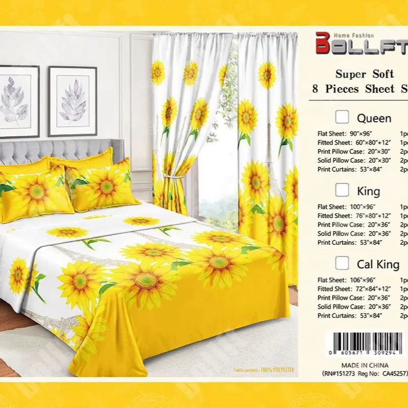 BOLLFT Super Soft 8 Piece Sunflower Floral Bed Sheets Set, King size