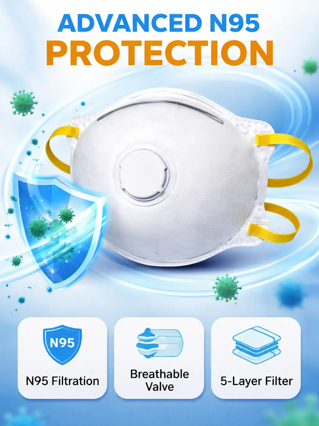 ·N95 Filtration Efficiency – Helps filter airborne particles for added protection