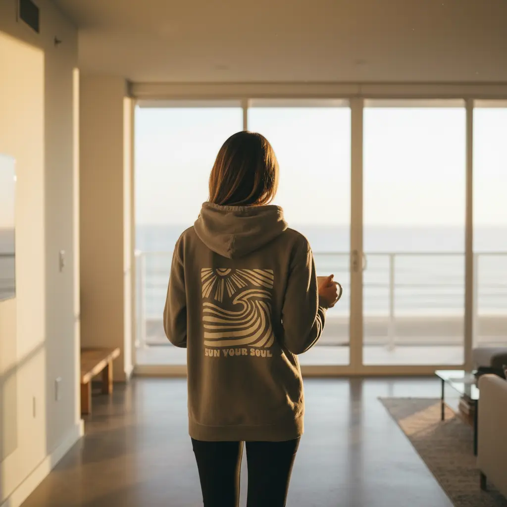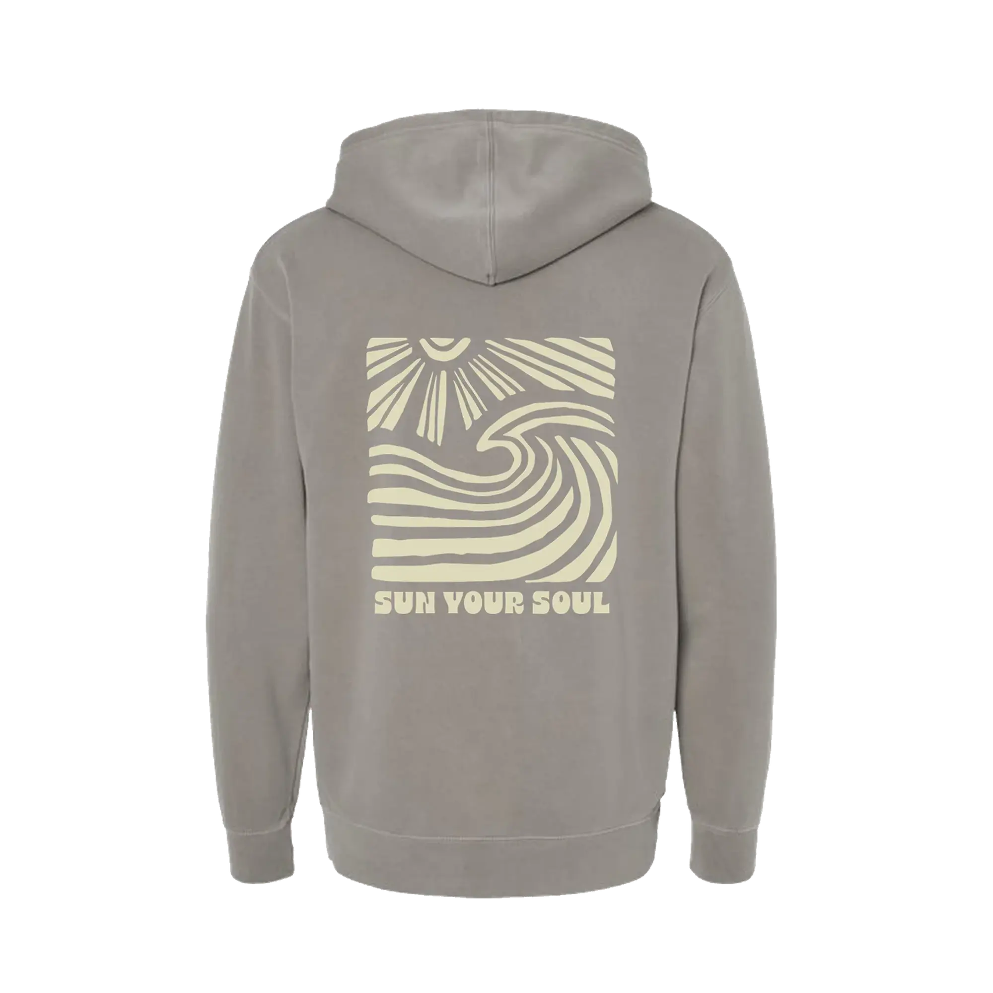 That calm, sun-washed moment at the end of the day. Featuring a hand-drawn sun and wave graphic on a soft, lived-in cement tone, this hoodie is made for slowing down and soaking it all in.