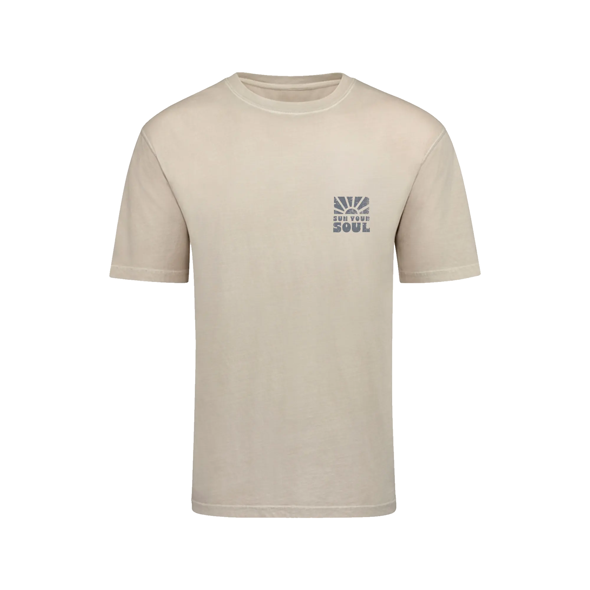 Pigment dyed and garment washed, each tee has a naturally sun faded look and a soft lived in feel from the first wear. Lightweight and breathable, it’s made for beach walks, lake evenings, long drives, and those last golden minutes before the sun slips below the horizon.