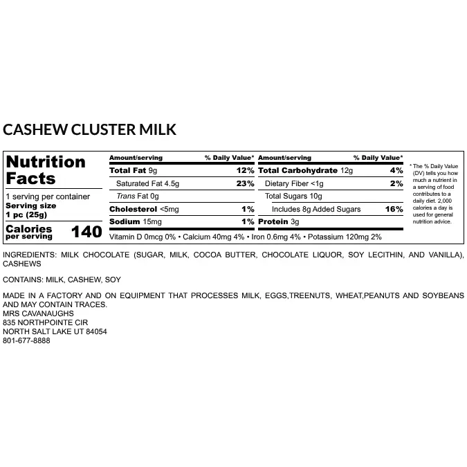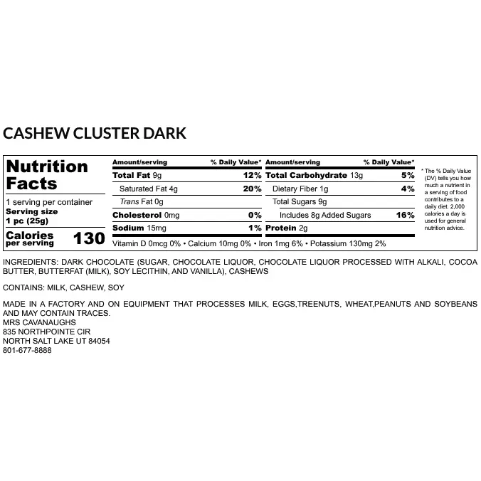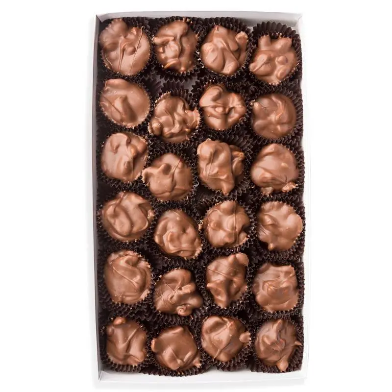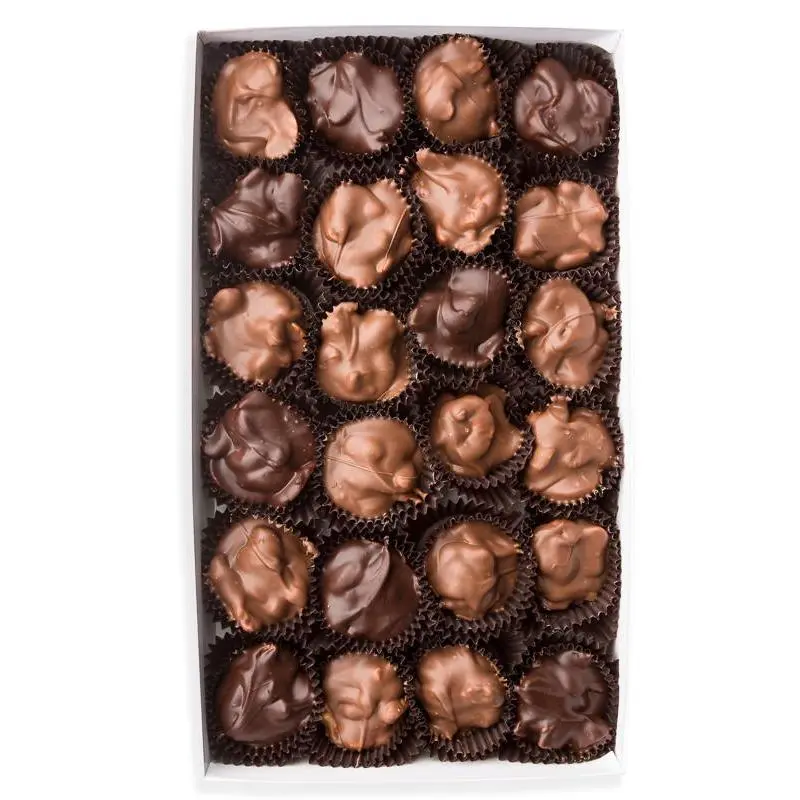 Tasty and buttery roasted cashews smothered in your choice of smooth milk chocolate, dark chocolate, or a mix of both chocolates. We hand dip these chocolates the old-fashioned way to ensure the highest quality Cashew Clusters possible.