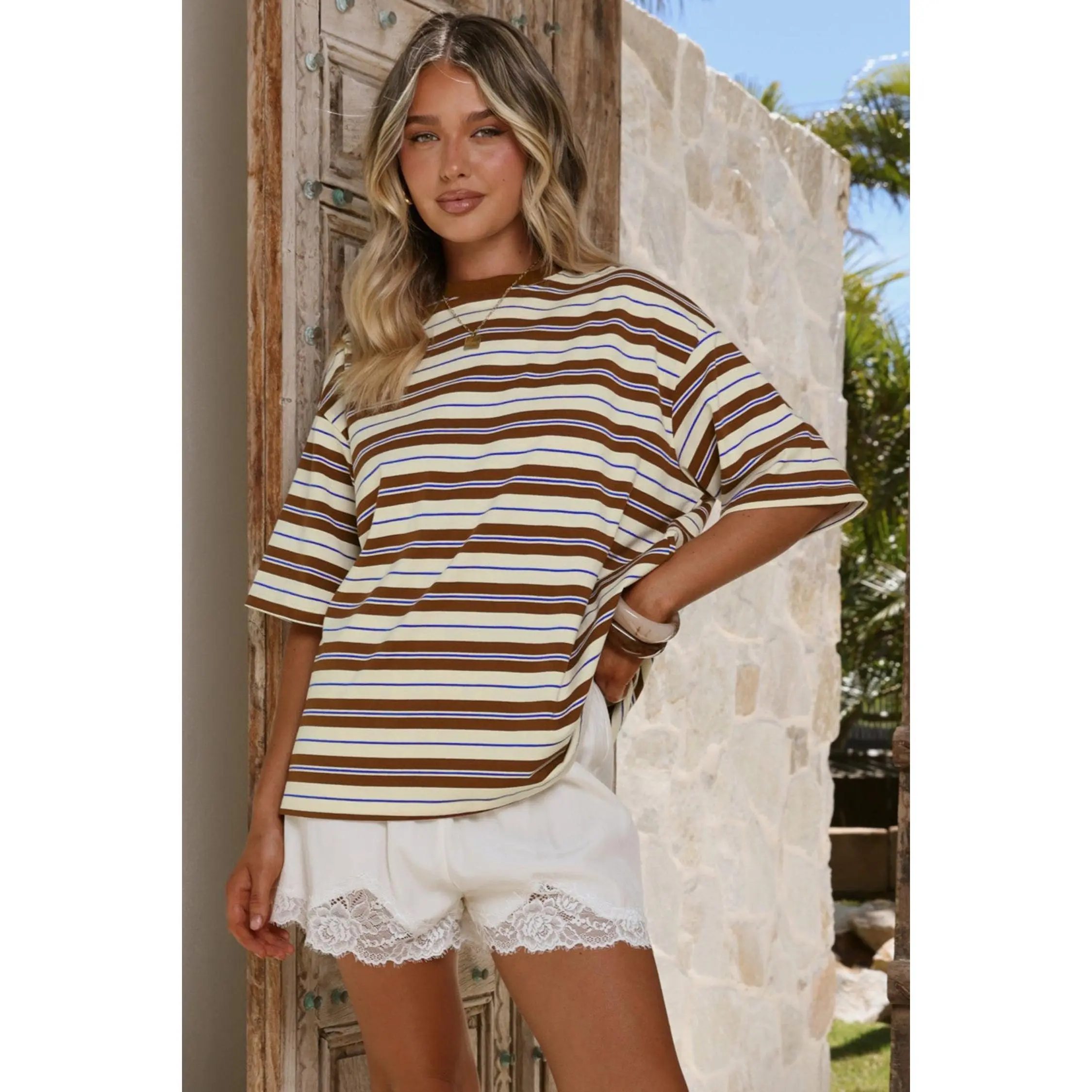 ·This is an essential piece that balances comfort with refined style.Its relaxed boxy cut and classic crew neckline work well for daily wear.The oversized tee delivers a laid-back, fashion-forward look on all body types.Pair with high-waist jeans, shorts, or skirts to complete a casual daytime look.