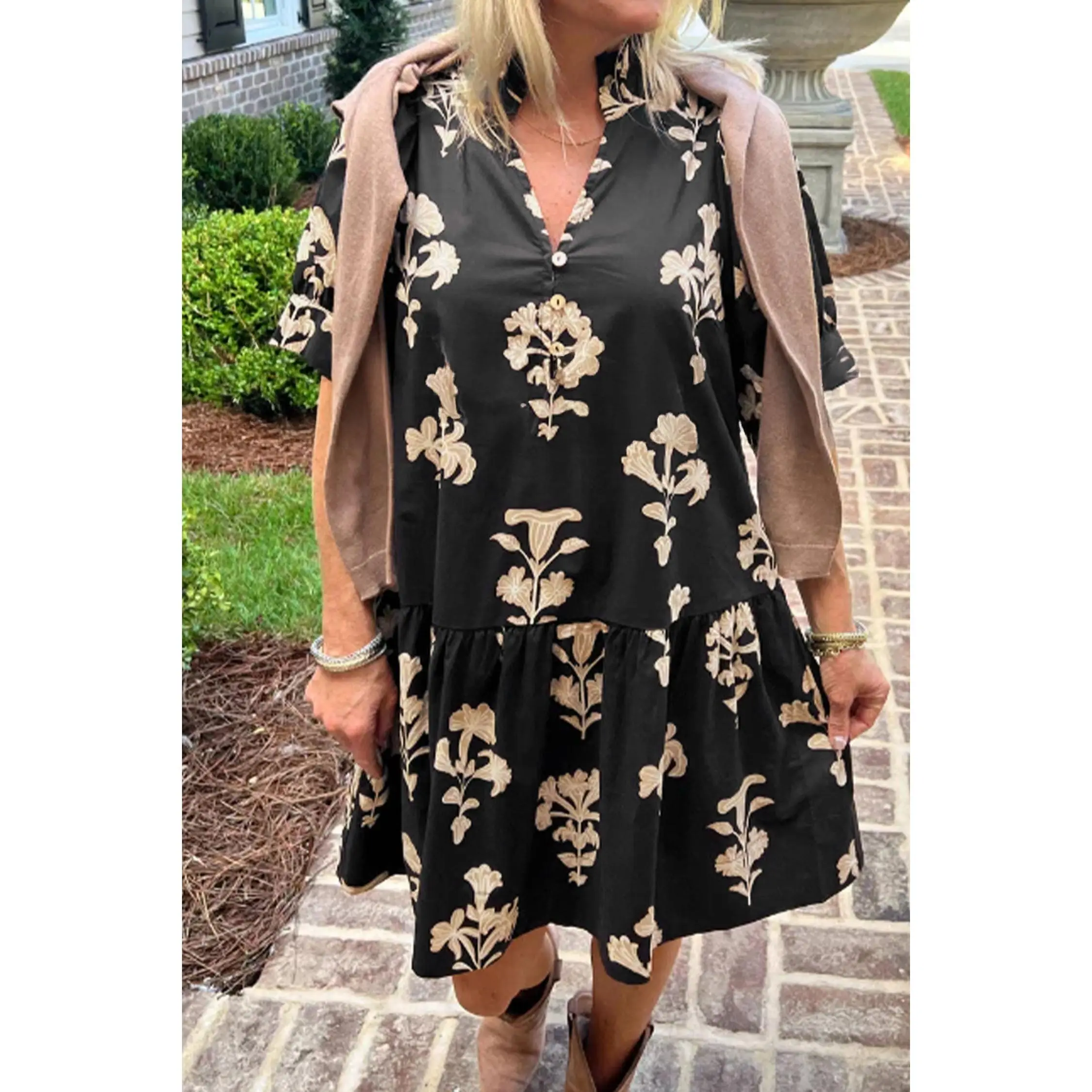 ·This cute dress transitions effortlessly through your day.Featuring a romantic floral pattern and feminine designs.Short dress with a flattering drop waist create an irresistible silhouette.Made from a soft and breathable cotton blend fabric.