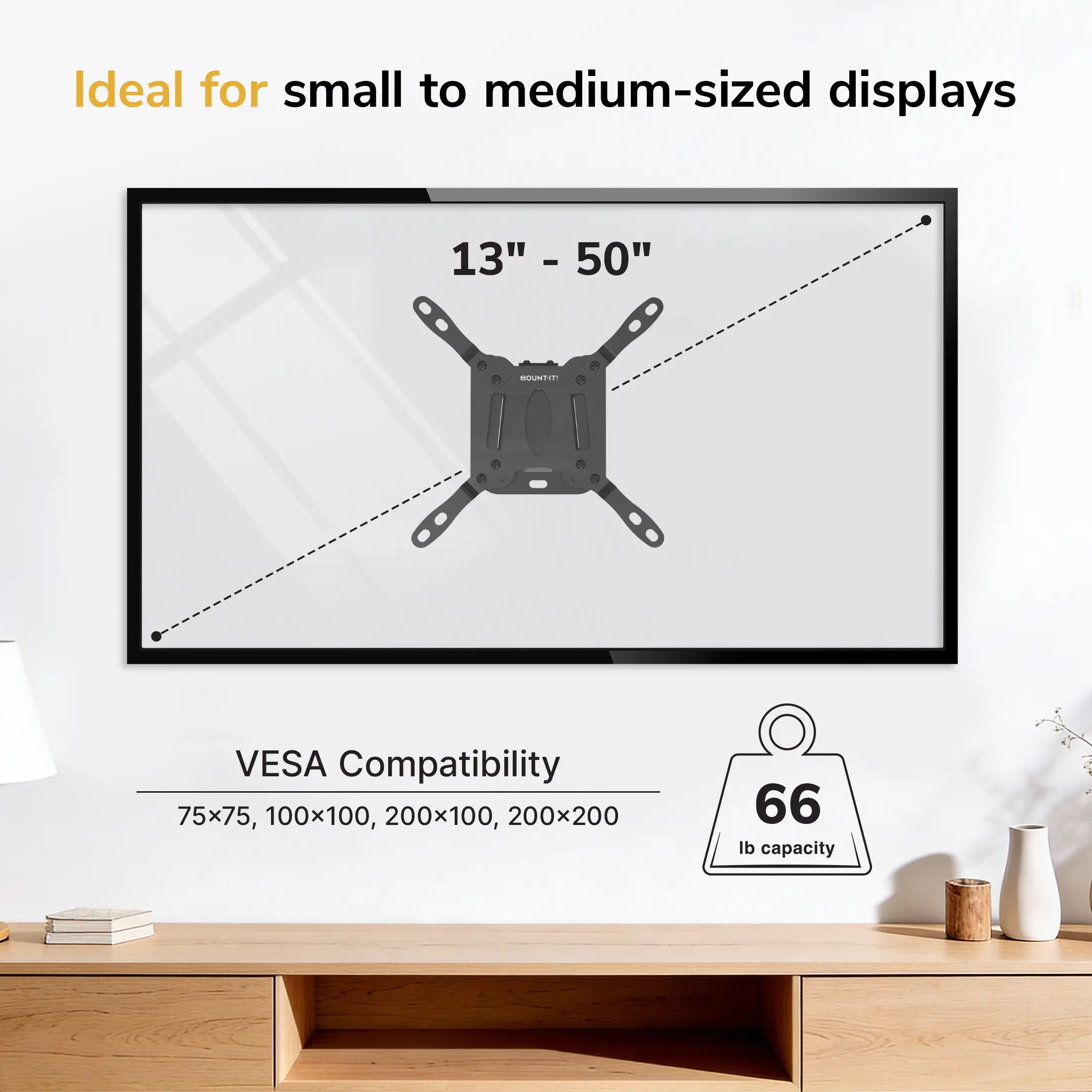 Designed for 13–50 inch TVs, this mount supports up to 66 lbs and fits VESA patterns from 75x75 to 200x200, making it ideal for smaller screens and monitors.