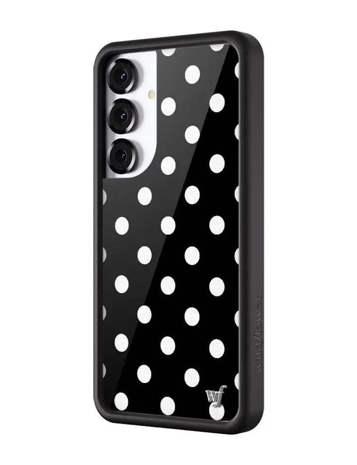 A timeless print, meet our Polka Dot Samsung Galaxy case | Black and White. This case features a black background and a classic white polka dot moment in this limited edition case.