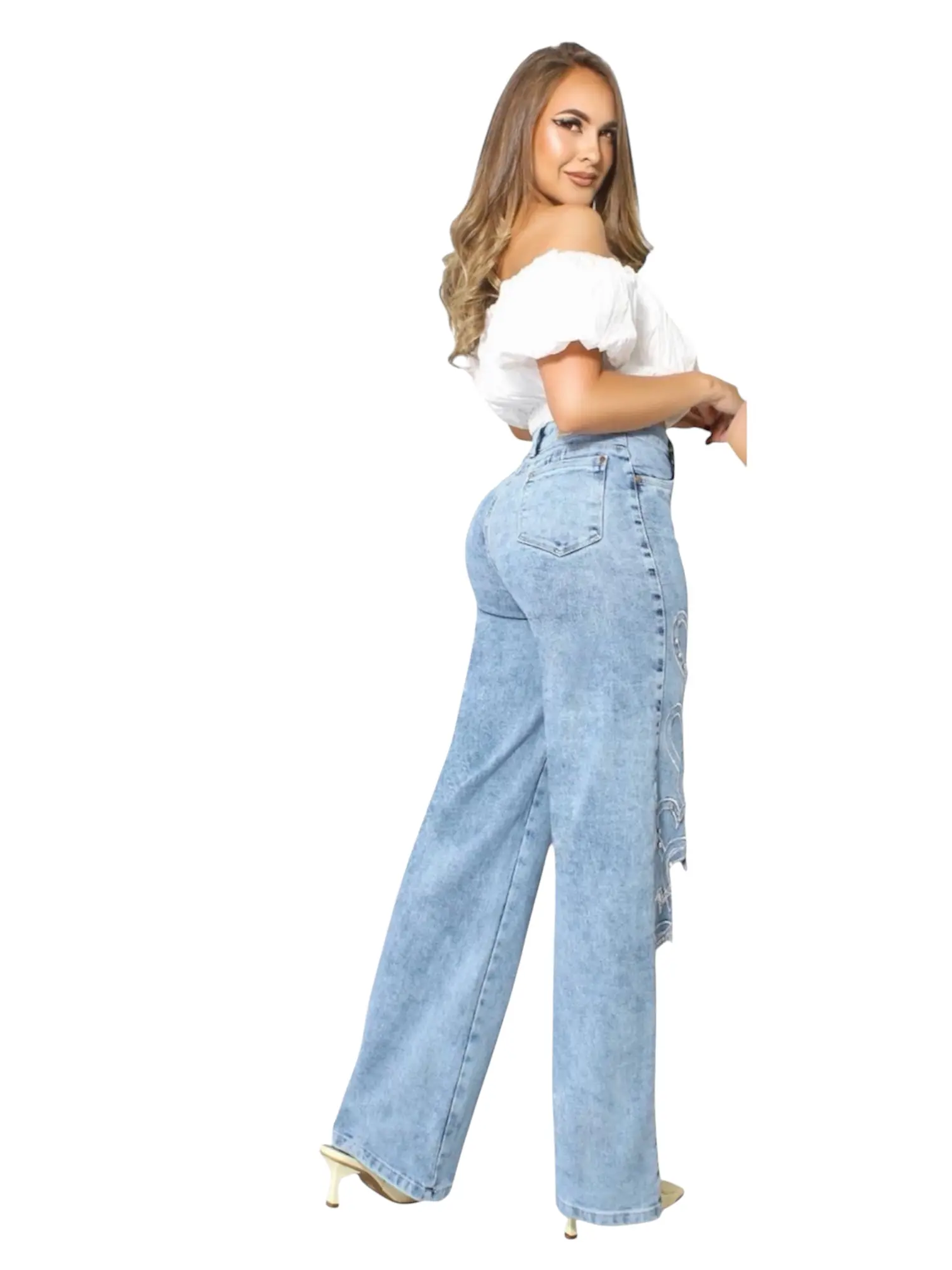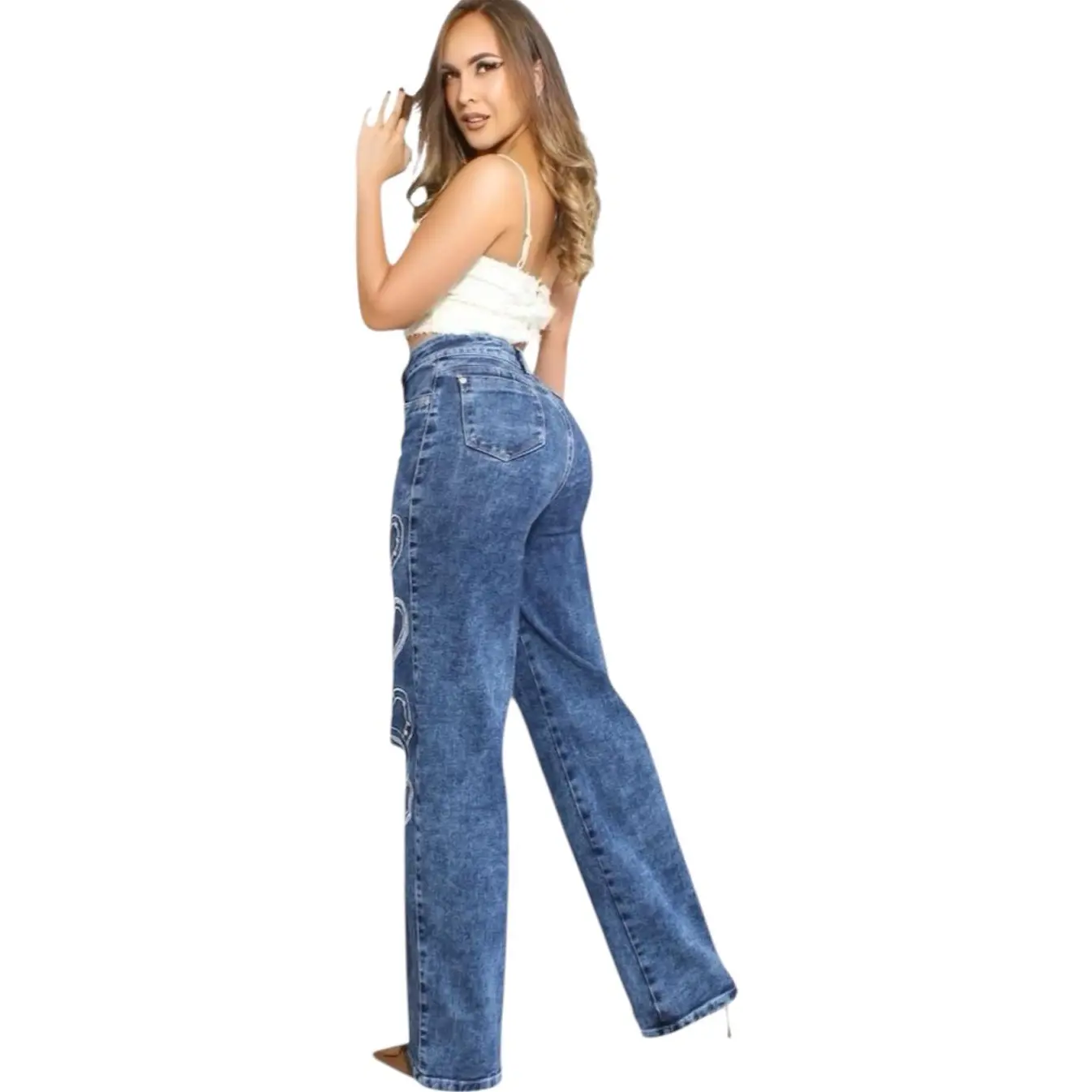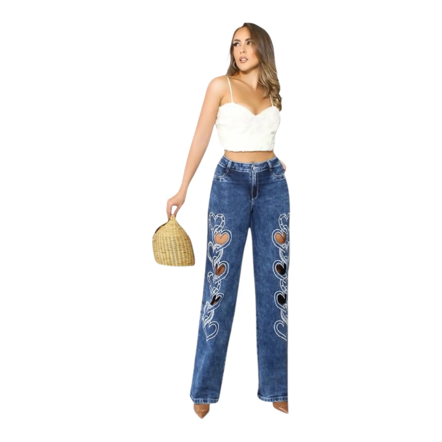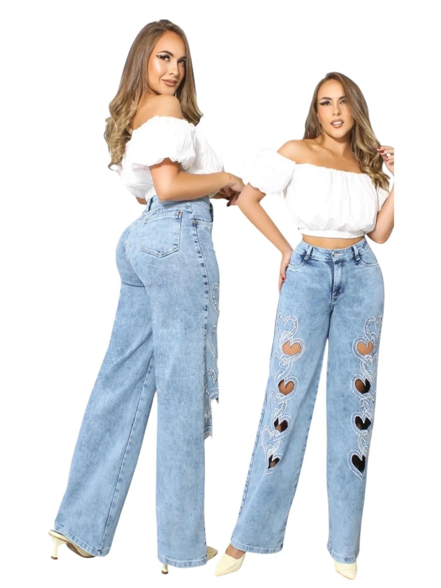 44-Jeans Colombiano Ref. Corazones High Waisted Wide Leg Heart Cutout Push Up Denim.