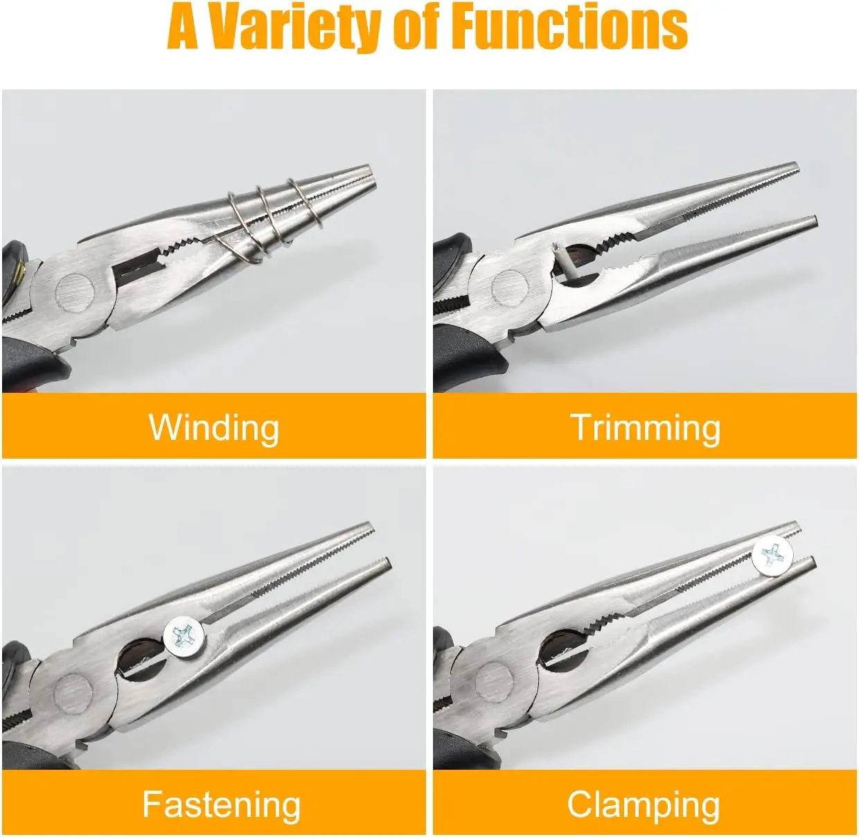·【Labor-saving Design】The needle-nose pliers are designed on the principle of lever. The length of the pliers wall is larger than the pliers head, so it saves more energy when using. Lengthen clamp head design, easy to use in narrow space; It has the functions of fastening, clamping, winding, cutting and stripping
