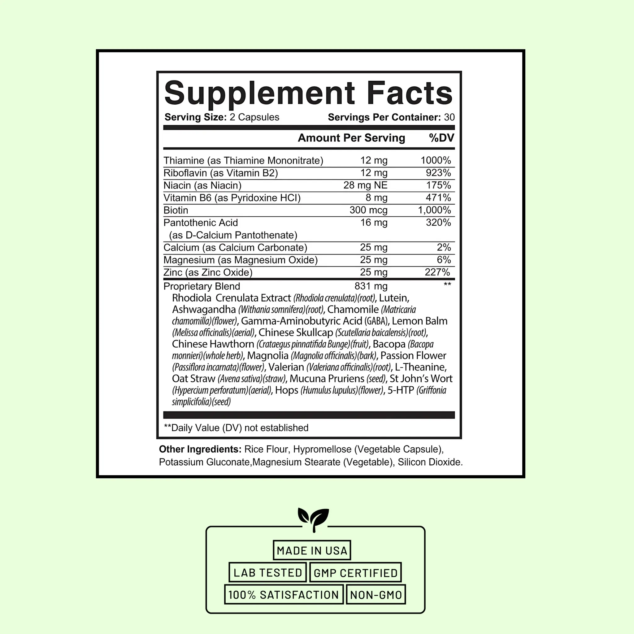 ·Biotin & Pantothenic Acid: Promotes emotional stability and reduces anxiety.