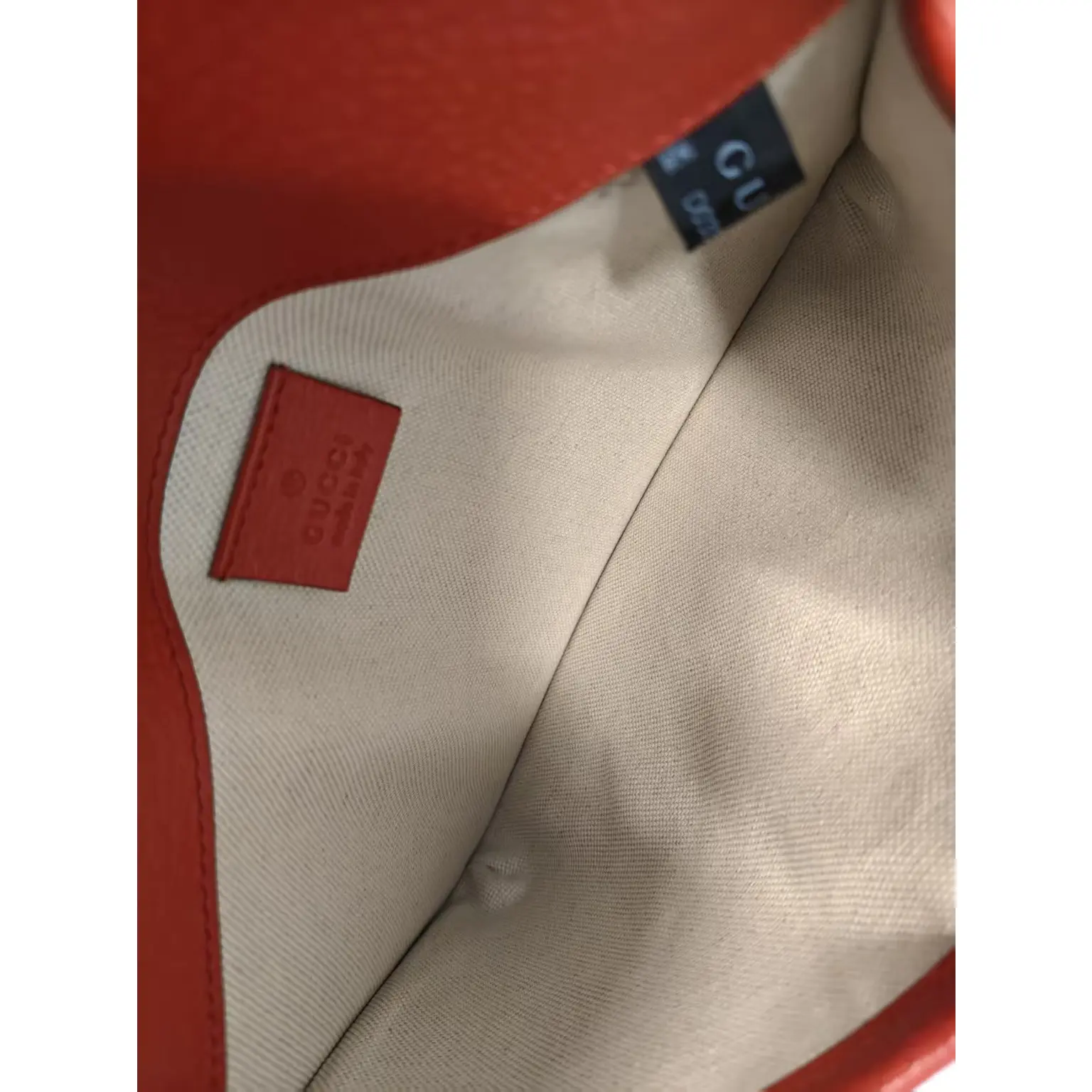 Discover the exquisite pre-owned GUCCI GG Ophidia. Professionally authenticated and inspected, this bag is a statement piece. It features a red exterior with a beige canvas lining, embodying luxury and style. The grained leather material adds a touch of elegance. Perfect for those who appreciate high-end fashion.