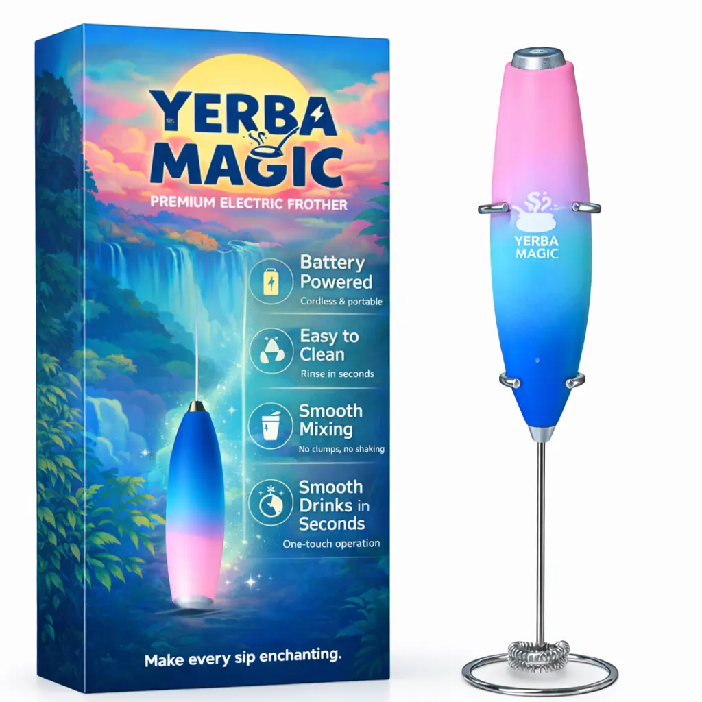 The Yerba Magic® Premium Electric Frother is designed to effortlessly blend your favorite drinks into smooth, silky perfection. Whether you’re mixing Yerba Magic, matcha, coffee, or protein drinks, this powerful handheld frother delivers fast, consistent results with a single touch.