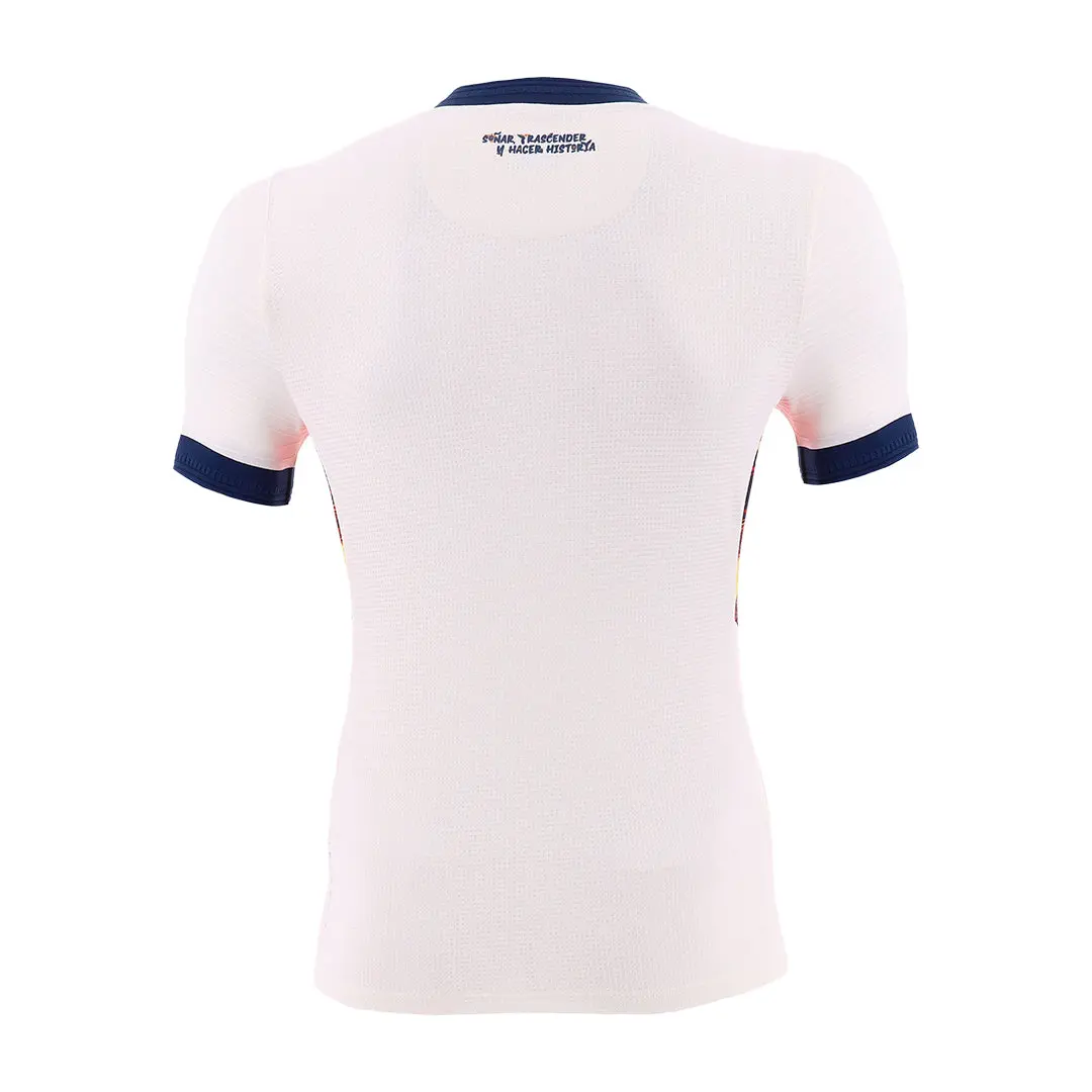 Brighten up match day with the Official Ecuador 2026 World Cup Women’s Away 2 Jersey. As an authentic player-issue match kit, this white jersey features a vibrant tricolor-inspired side design and a navy blue V-neck engineered for elite athletic performance. Tailored for a perfect women’s pro-fit, this Marathon Sports import allows you to display your "Orgullo Ecuatoriano" in the exact premium gear worn by the squad.