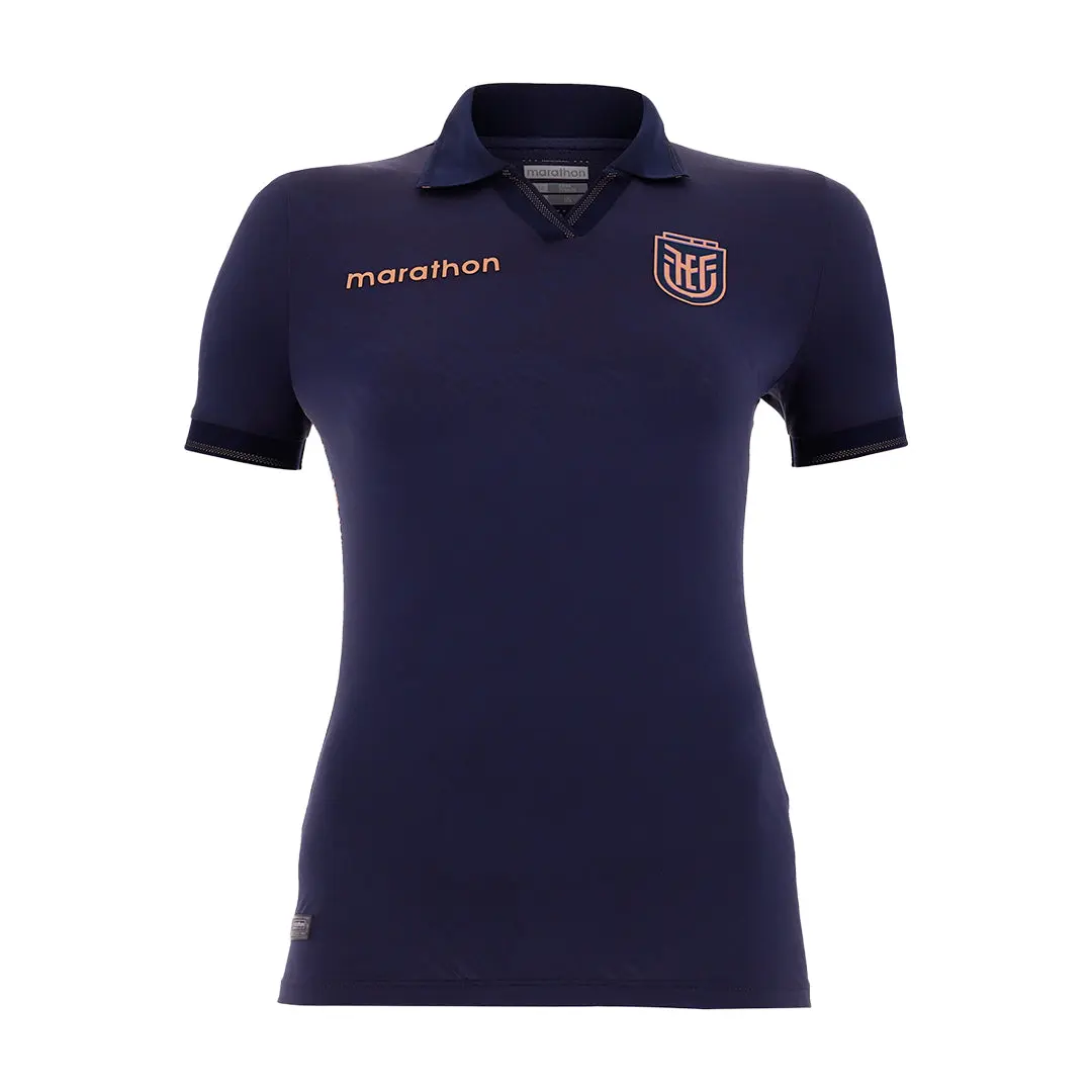 Stand out with the Official Ecuador 2026 World Cup Women’s Away 1 Jersey. Engineered to the exact specifications of the national team players, this authentic match kit combines a sleek navy blue palette with a tailored performance fit. Featuring sophisticated rose-gold trim and the official high-definition crest, this Marathon Sports player-issue import is the ultimate expression of premium Ecuadorian pride.