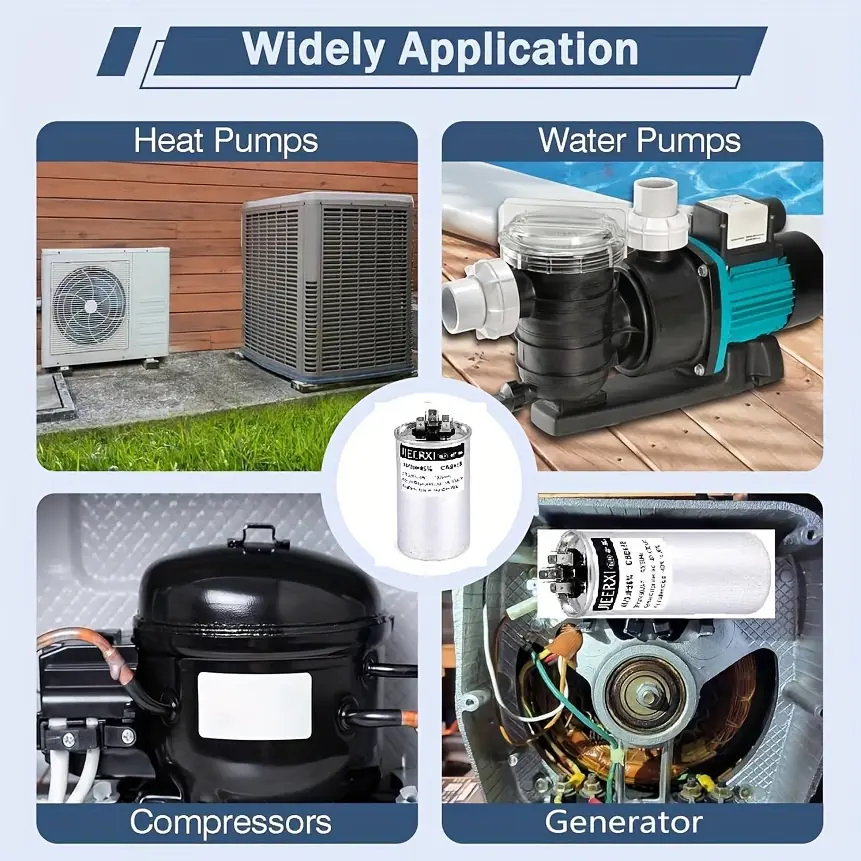 Air Conditioning Maintenance Accessories 50+5 MFD 45/5 UF, CBB65 Dual Running Circular Start Capacitors for Condenser Direct Cooling, Heat Pump Air Conditioning, AC Motor, AC Motor Operation, Fan Start