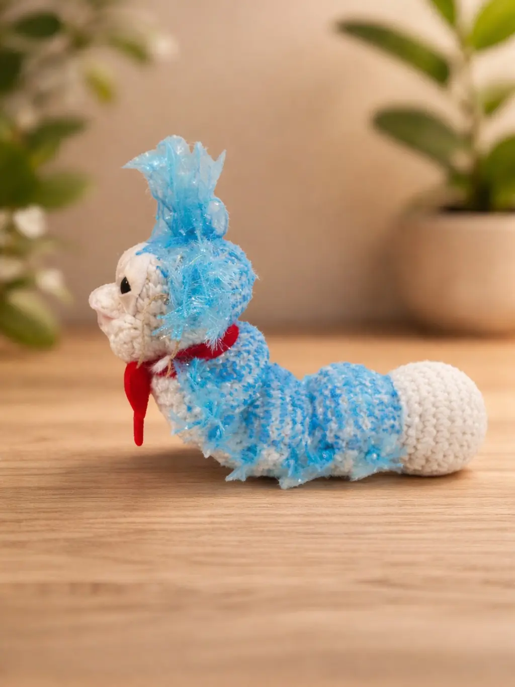 Labyrinth Blue Worm Crochet Plush Handmade Fantasy Amigurumi
