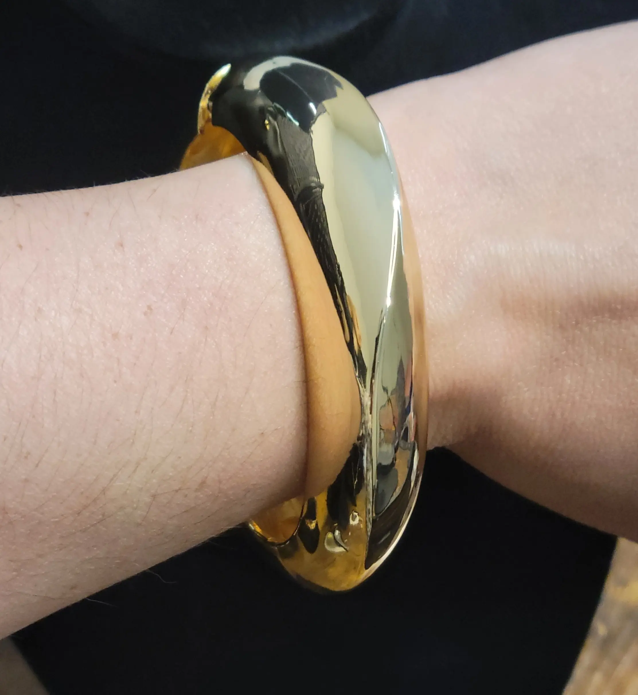 Bold. Chunky. Statement. This gold-plated bangle is waterproof, hypoallergenic, and made to elevate your everyday look with effortless luxury.