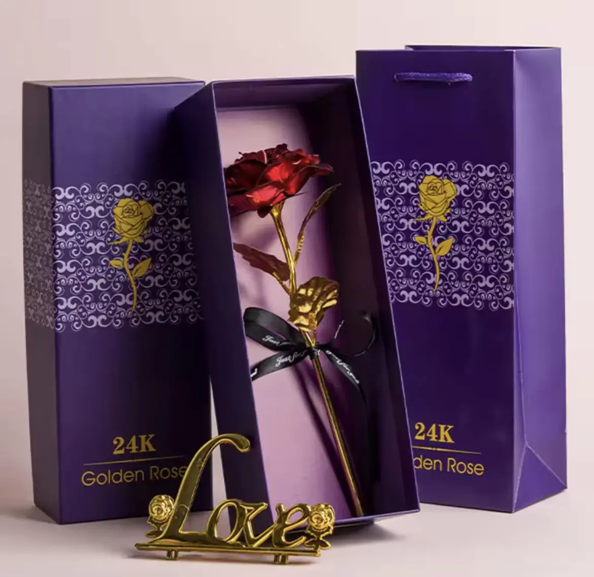 Capture the beauty of everlasting love with this elegant 24K Gold Plated Rose with Love Holder. Designed to symbolize romance that never fades, this stunning piece features a real rose carefully preserved and coated in luxurious 24K gold plating, creating a timeless keepsake that will be cherished forever.