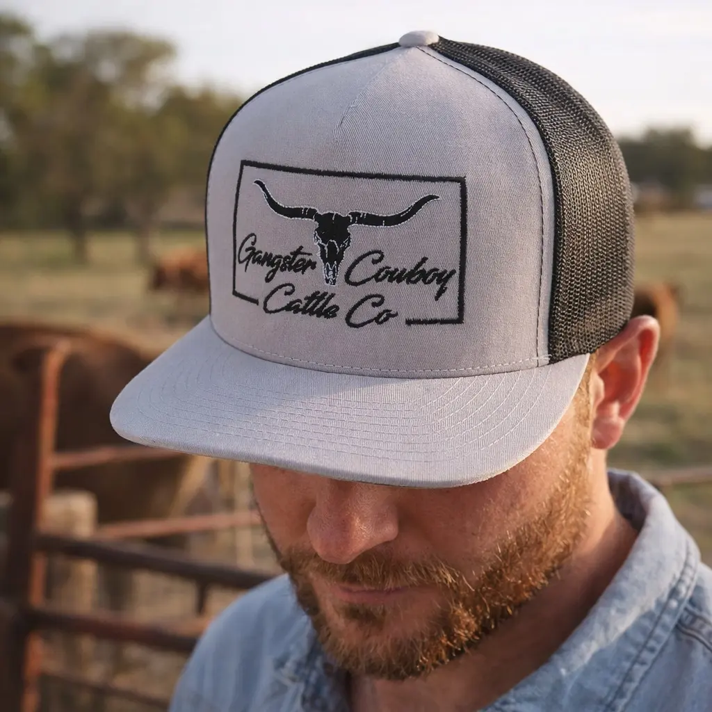 ·Title: "Cattle Co" Black and White on a Silver Yupoong Classic Snapback. Gangster Cowboy Official Product