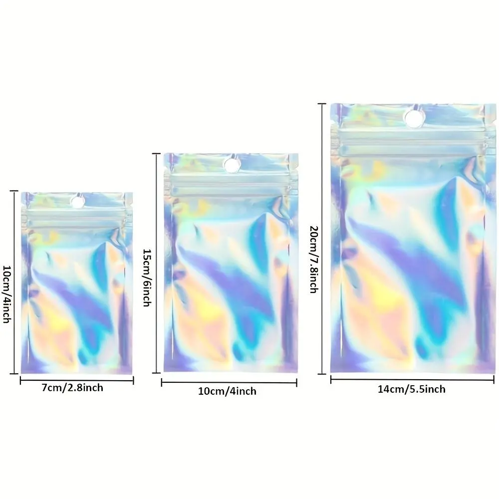 10/20/50pcs Resealable Deodorant Bag, Holographic Aluminum Foil Bag, Food Candy Jewelry Screw Flat Zip Lock Bag cosmetics Packag