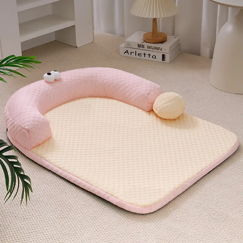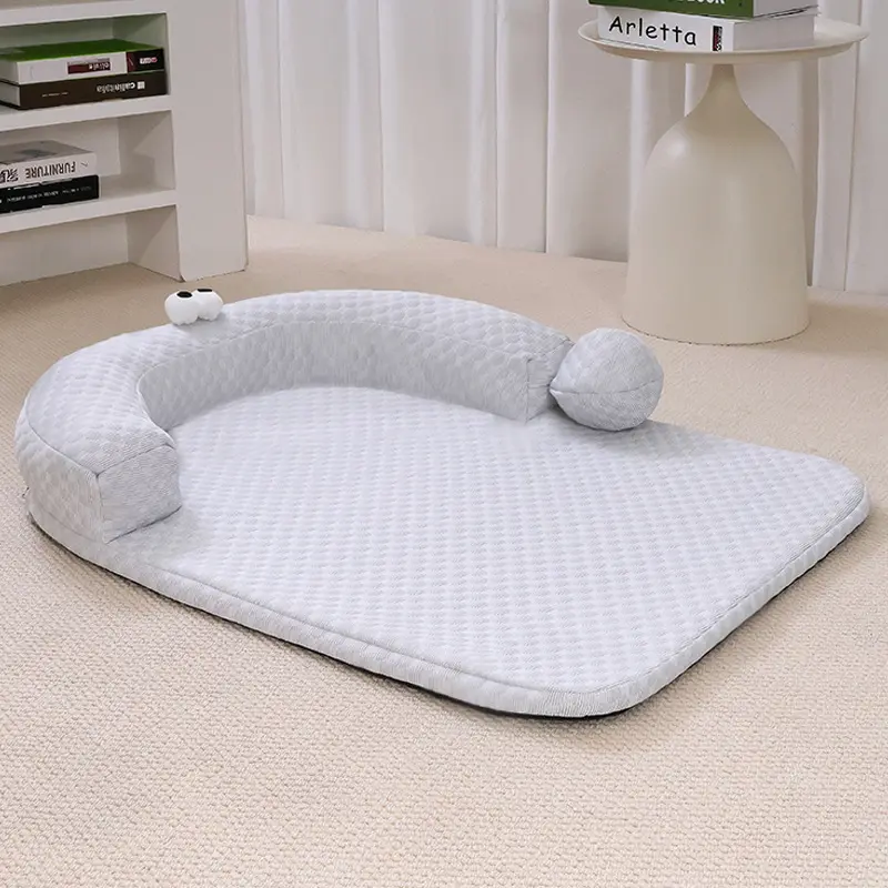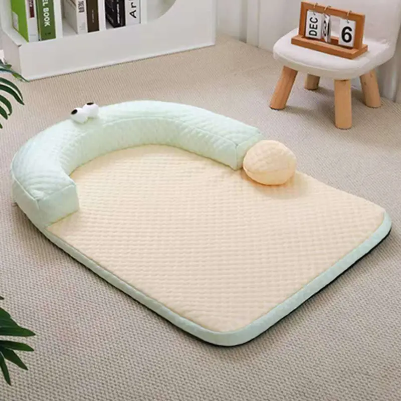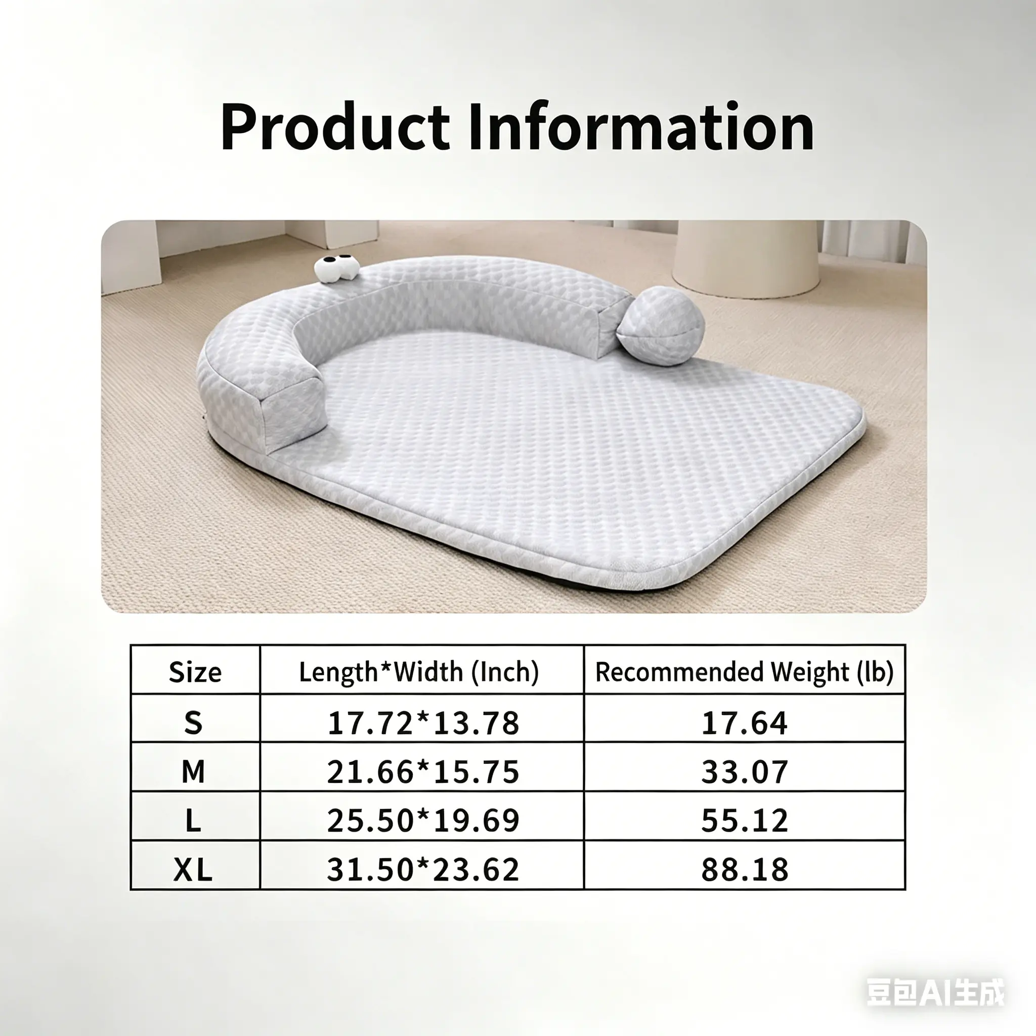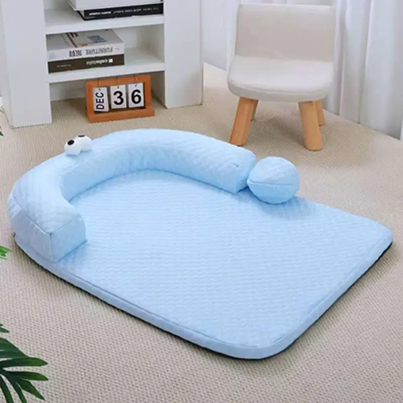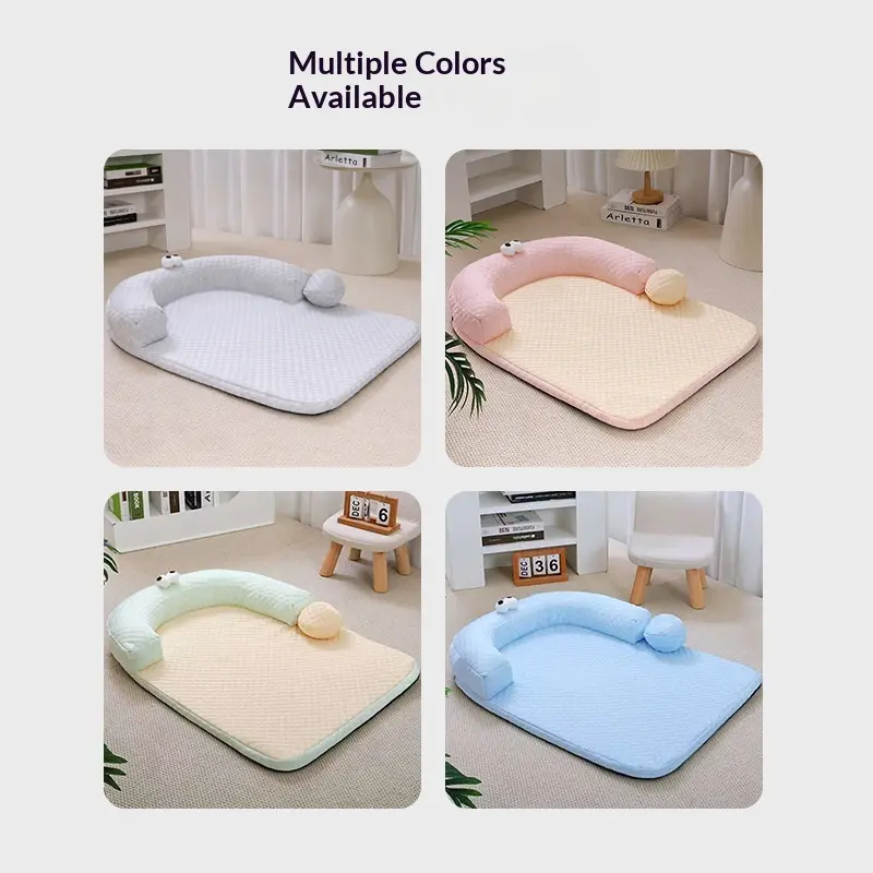 Cooling Cat Bed with Pillow, Breathable Ice Silk Pet Sofa for Indoor Cats, Orthopedic Support Dog Bed with Cute Cartoon Design, Washable Summer Pet Mat for Kitten Puppy
