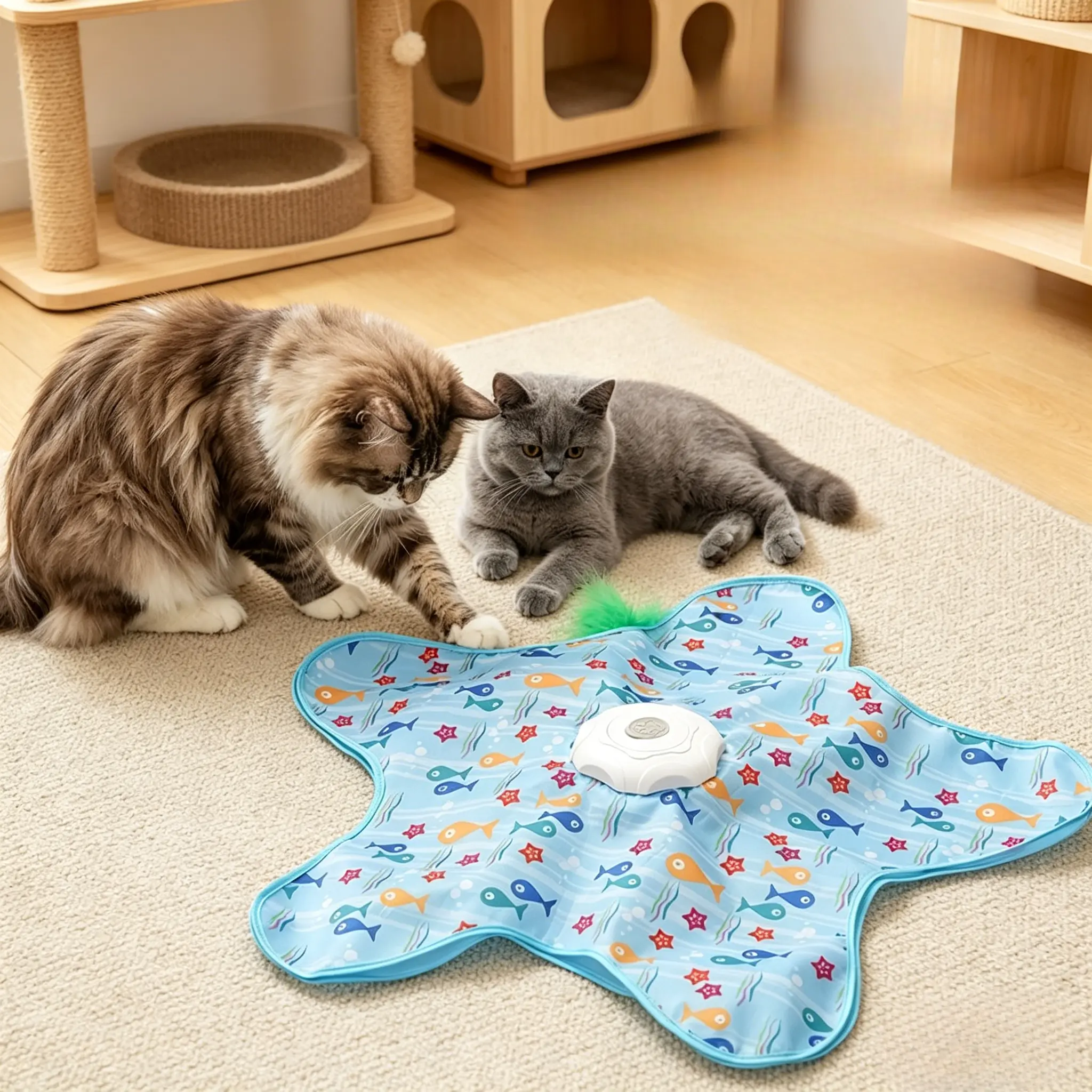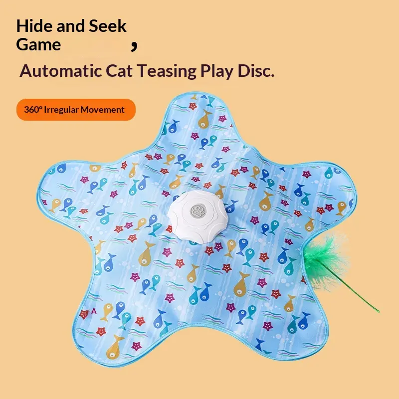 Interactive Underwater Themed Automatic Cat Toy, Hide-and-Seek Electronic Moving Feather Teaser for Indoor Cats, Self-Playing Kitten Enrichment Exercise Toy
