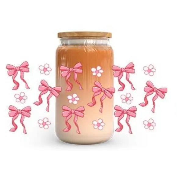 Add a touch of soft, feminine charm to your daily routine with this coquette bow glass tumbler, designed for the girl who loves all things pretty. This 16oz aesthetic iced coffee cup features a trendy bow print wrap, paired with a natural bamboo lid and reusable glass straw — the perfect blend of style and function.