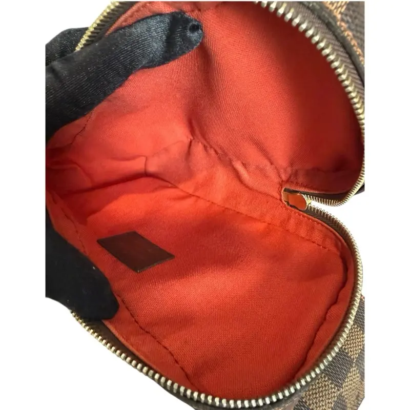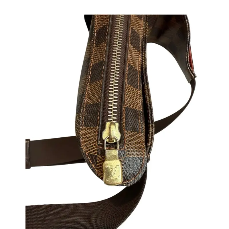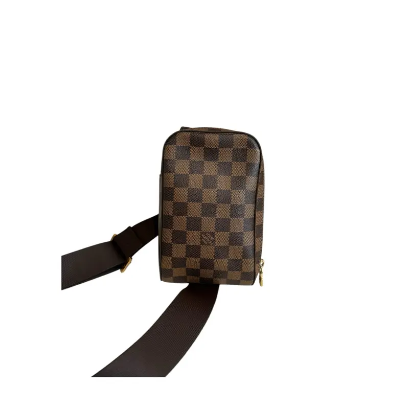 Elevate your collection with this authentic Louis Vuitton Damier Ebène Geronimo sling bag from 2005—a timeless piece that embodies luxury craftsmanship and enduring style. In very good condition, this coveted design features the iconic Damier canvas with only minimal signs of gentle wear: subtle fading on the interior and light tarnishing on hardware that speaks to its authentic heritage. The adjustable strap offers versatile styling, whether worn crossbody or adjusted for shoulder carry. Compact yet refined at 8 x 4.5 x 2 inches, it's the perfect accent for any sophisticated wardrobe. A pre-owned treasure for the discerning collector who values quality, heritage, and sustainable luxury.