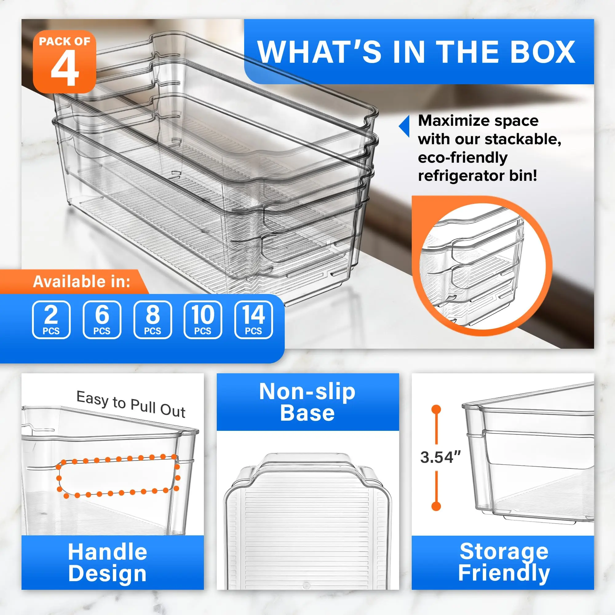 Crafted from durable PET plastic, these bins are lightweight, sturdy, and easy to clean—ideal for everyday use. Perfect for storing fruits, vegetables, snacks, condiments, and more.