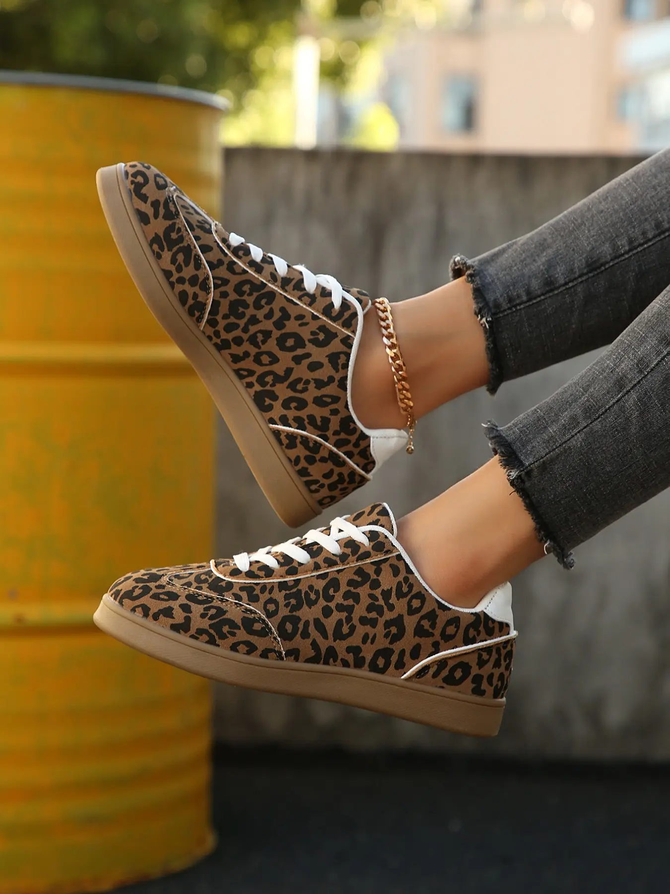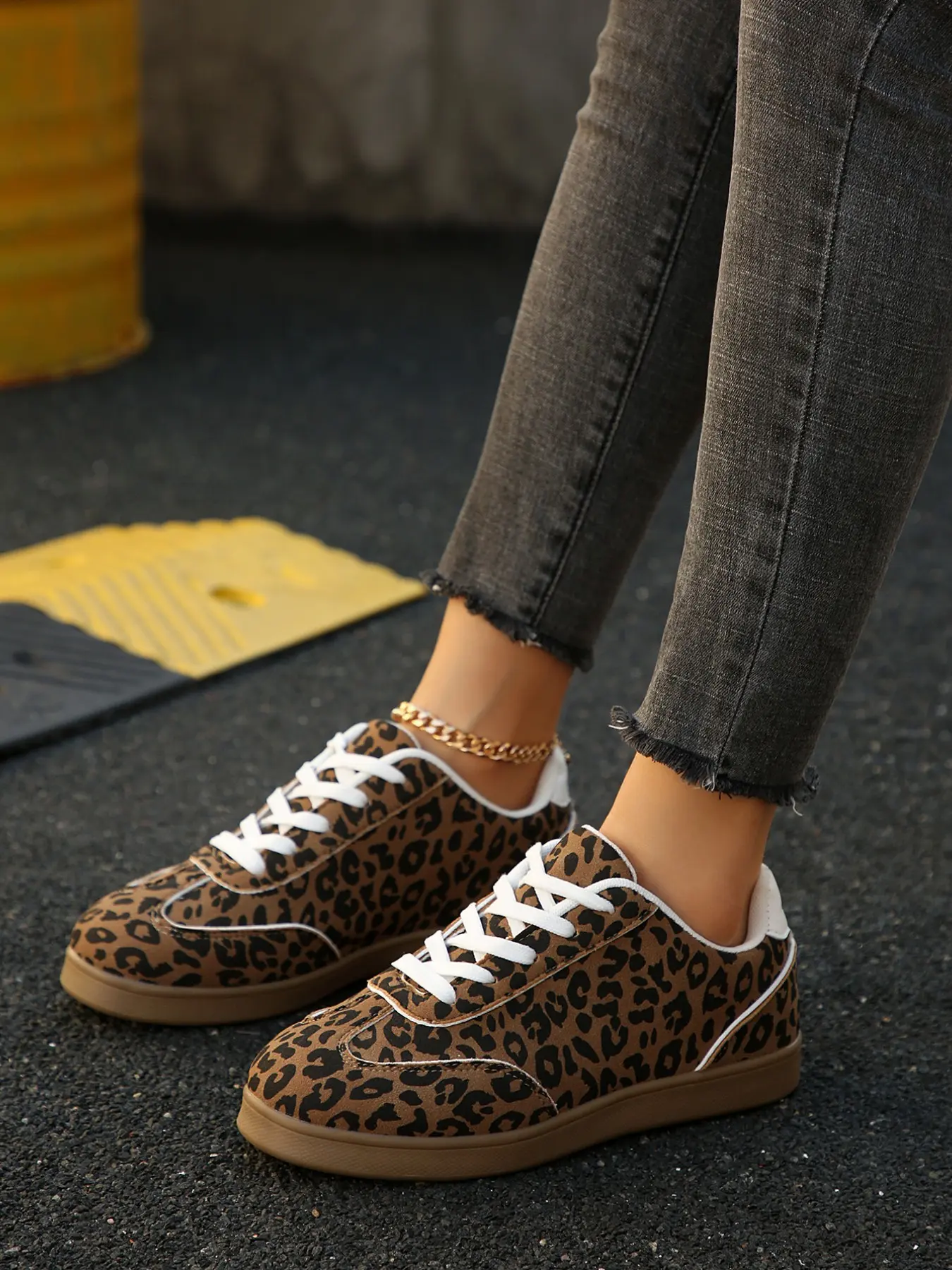 Leopard Print Derby Shoes for Women, 2026 New Vintage Rubber Sole Casual Sneakers, Versatile Shoes for Students