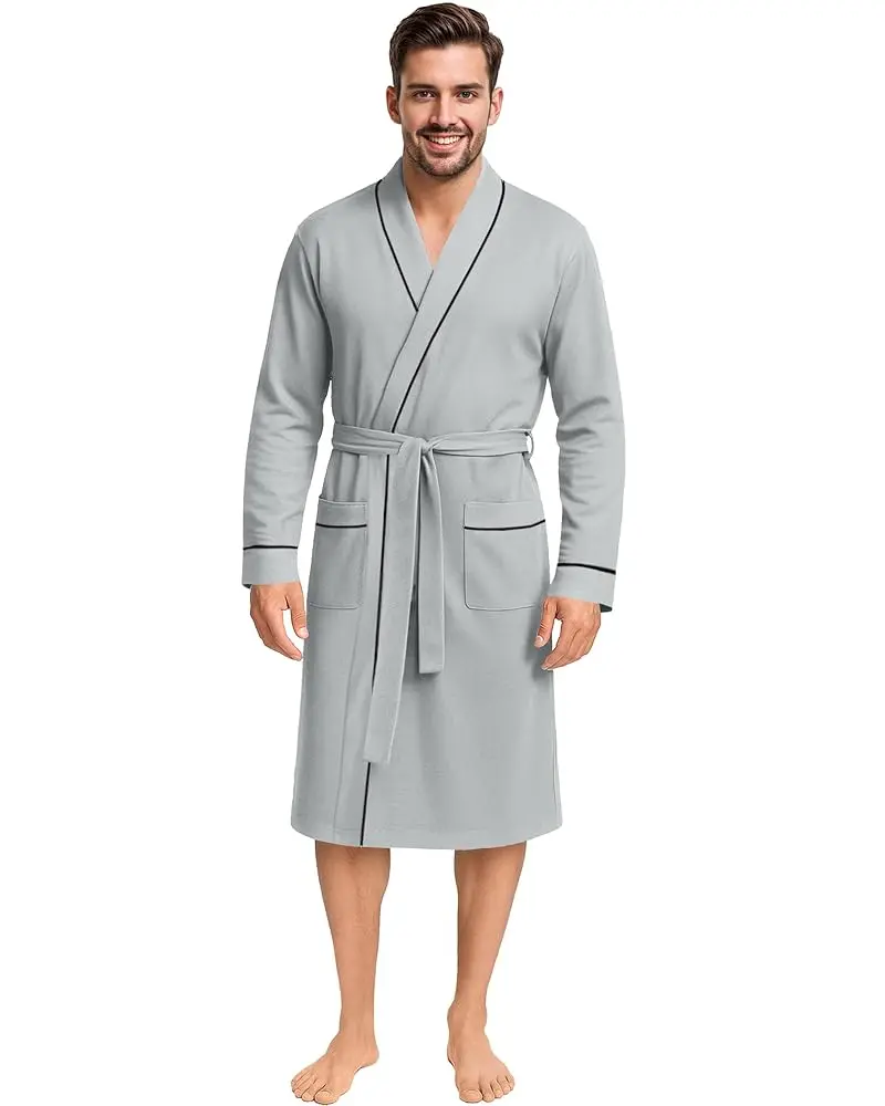 Men's Robes - Crafted from a high-quality cotton blend fabric, provide exceptional comfort and expert craftsmanship. Designed to be neither too thick nor too thin, these robes feature double-stitched seams for durability while remaining soft, cozy, and lightweight for ultimate relaxation.