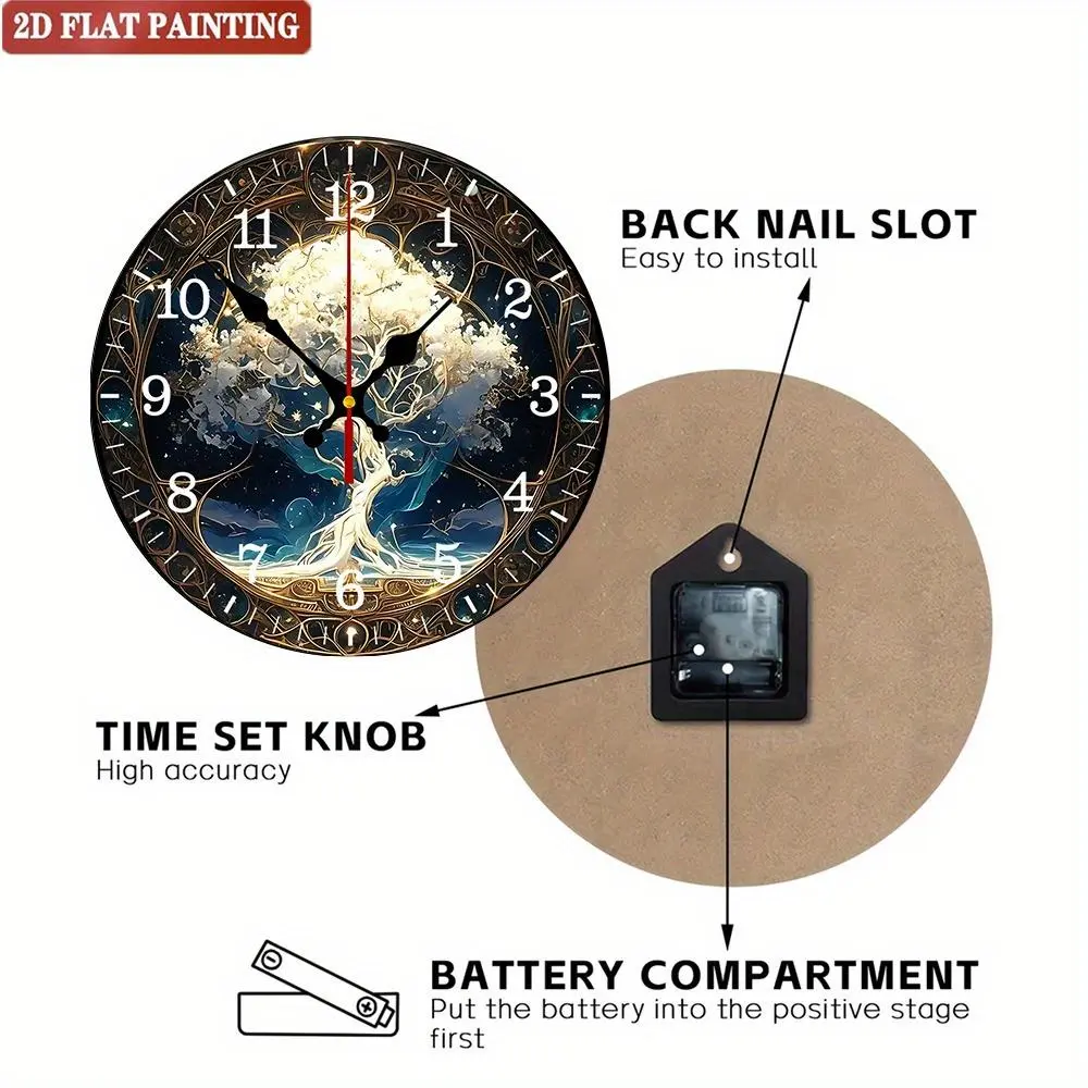 Fantasy Tree Wall Clock. Silent vintage art for home or office decor.