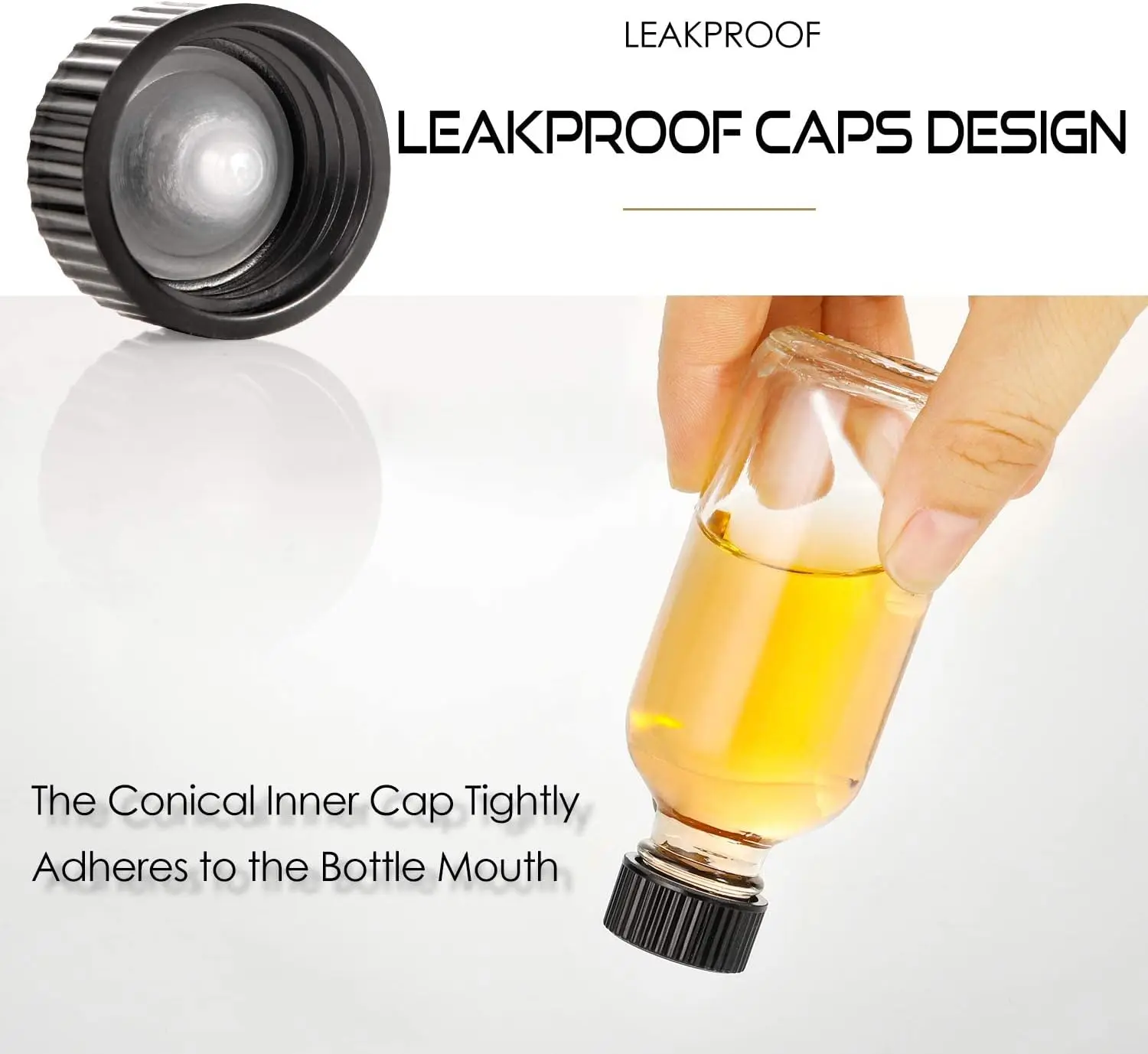 • These mini bottles are perfect for travel. Leak-proof covers make them safe for liquids. Easy to clean with small bottle brushes and dishwasher safe. Ideal for DIY essential oils, tincture, and perfume oils.