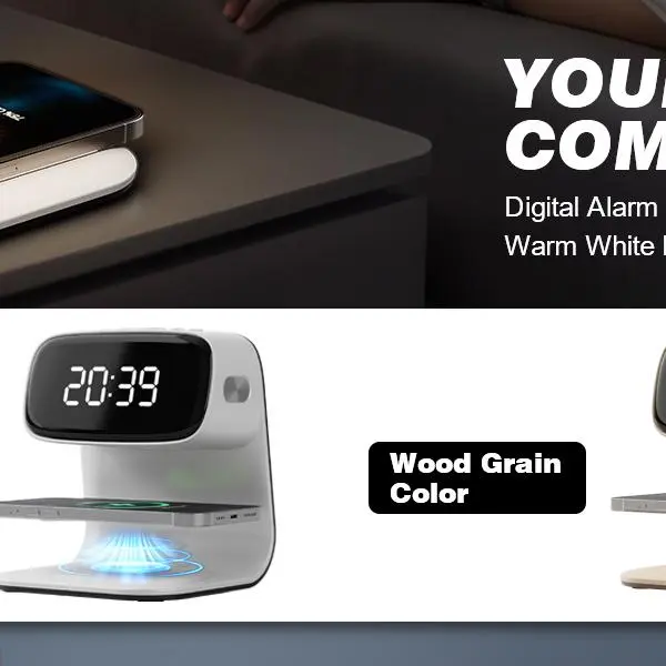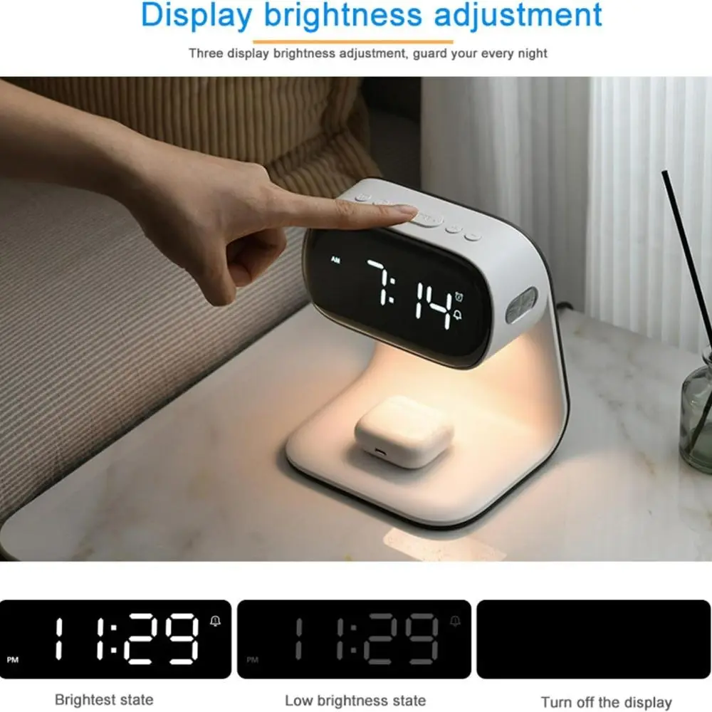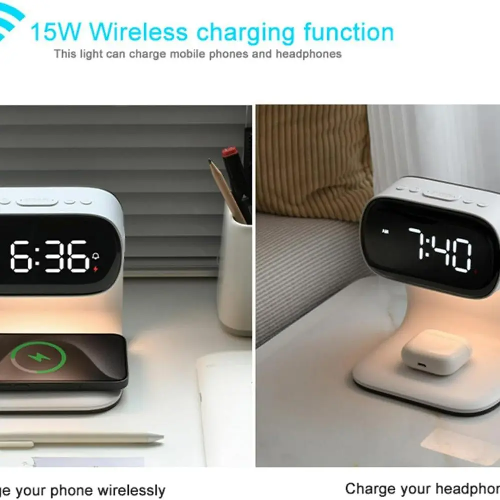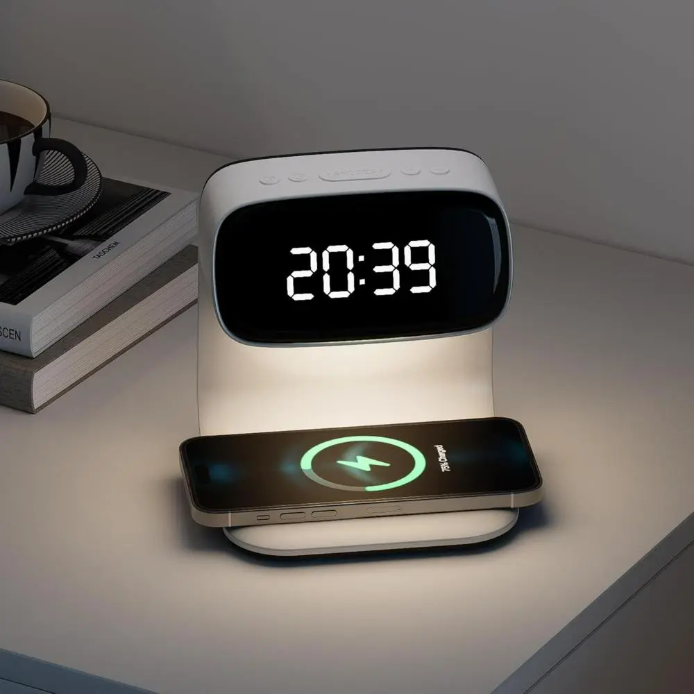 Digital alarm clock with wireless fast charging station, bedside touch smart light, 3-color night light adjustment