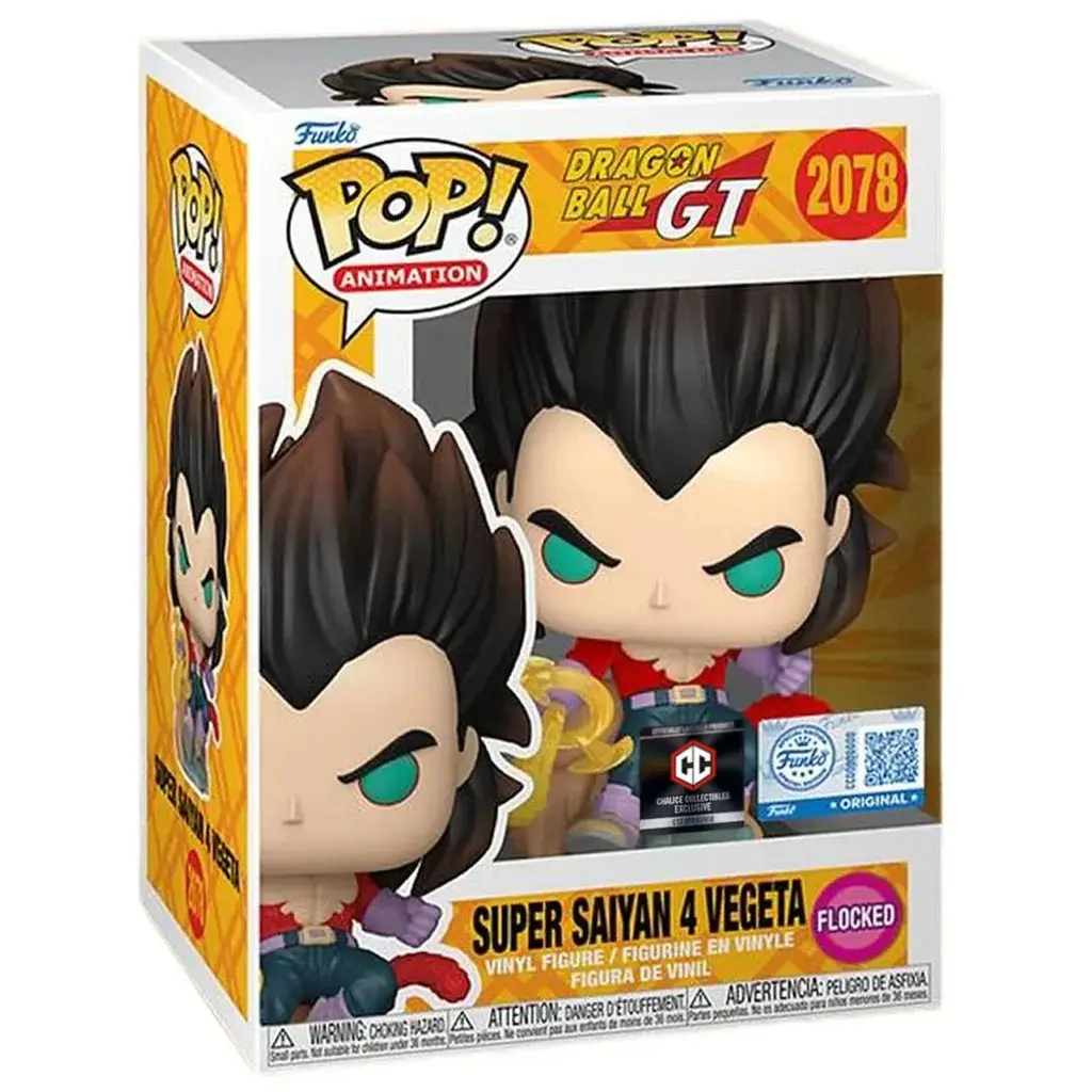✨ Funko Super Saiyan 4 Vegeta Dragon Ball GT #2078 is a special edition collectible. This flocked version adds a unique texture to the figure. Perfect for fans of Dragon Ball GT, it captures Vegeta in his Super Saiyan 4 form.