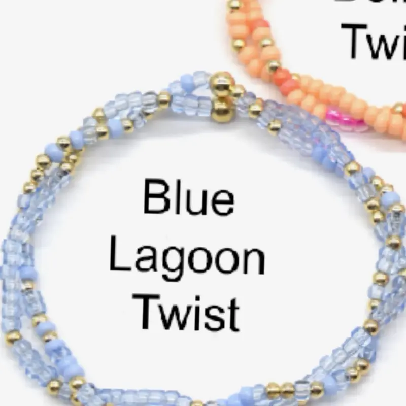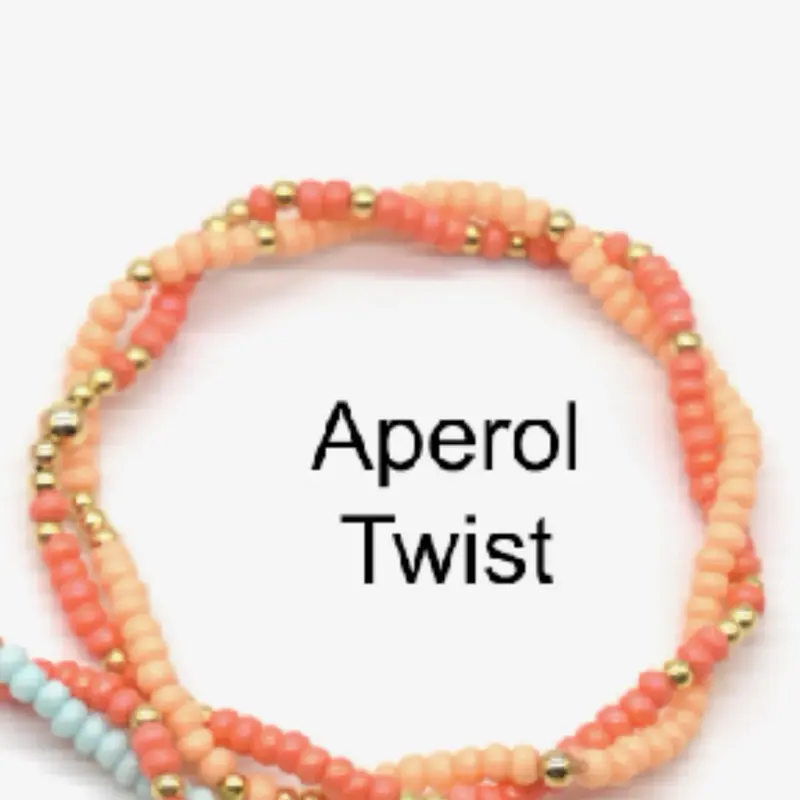 Discover the Aperol & Blue Lagoon Twisted Bracelet Stack, a vibrant jewelry set for women. This colorful beaded set adds a playful touch to any outfit. Perfect for those who love to accessorize, it features a unique twisted design that stands out. Ideal for casual or semi-formal occasions, it brings a burst of color to your ensemble. PLUS they are completely sweat and waterproof!