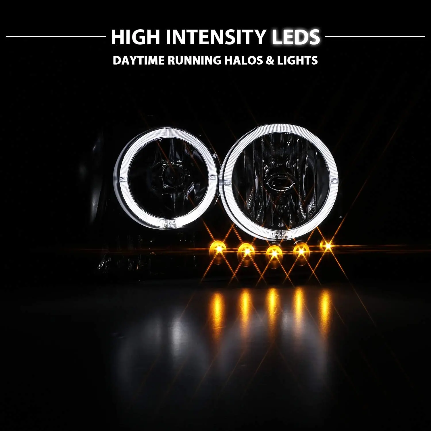 AmeriLite Black Replacement Headlight Turn Signal LED Halo 1pc For Dodge Dakota/Durango - Passenger and Driver Side