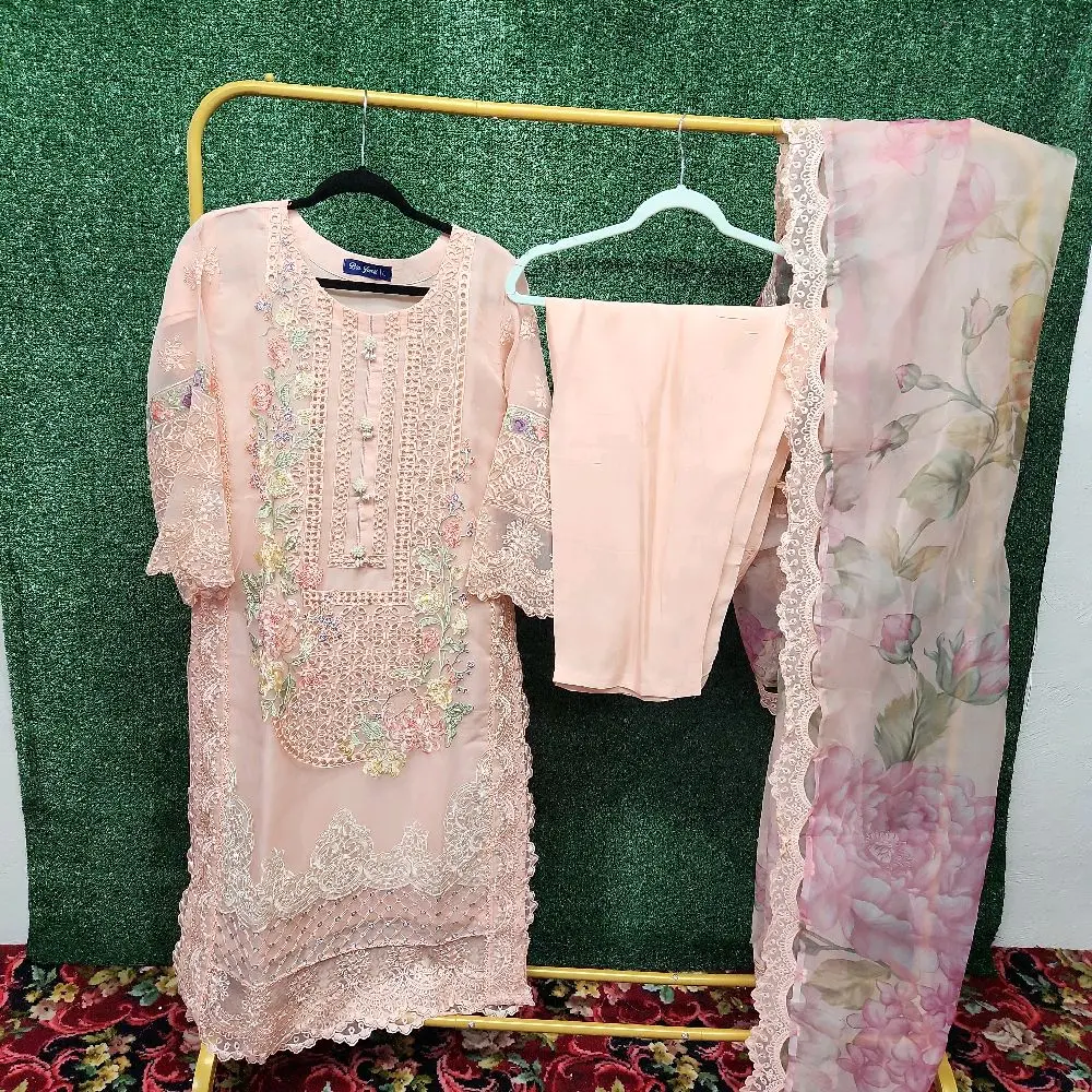 ✨ This 3-piece Pakistani dress is perfect for those seeking a ready-to-wear outfit. It combines traditional elegance with modern convenience. The dress is designed to be worn immediately, saving you time and effort. Ideal for various occasions, it offers a blend of style and practicality.