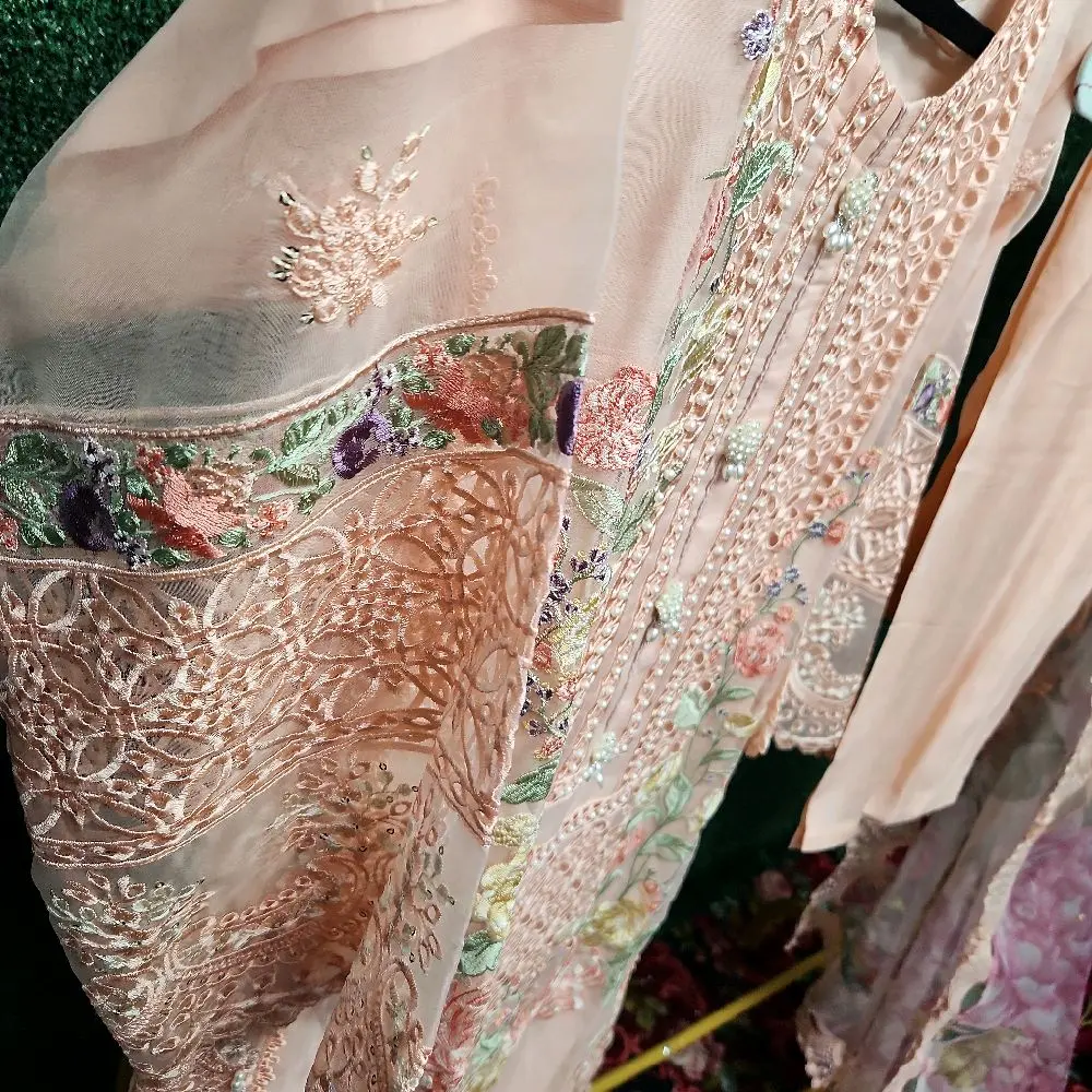 ✨ With this dress, you can step out confidently. It is ready to wear, eliminating the need for alterations. The design ensures a comfortable fit, making it a favorite choice for many. Embrace the beauty of Pakistani fashion with this exquisite dress.
