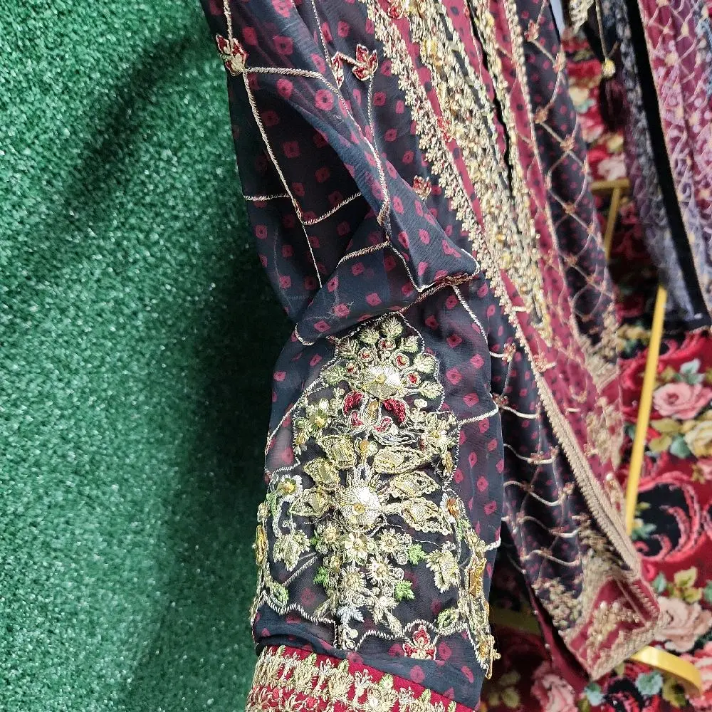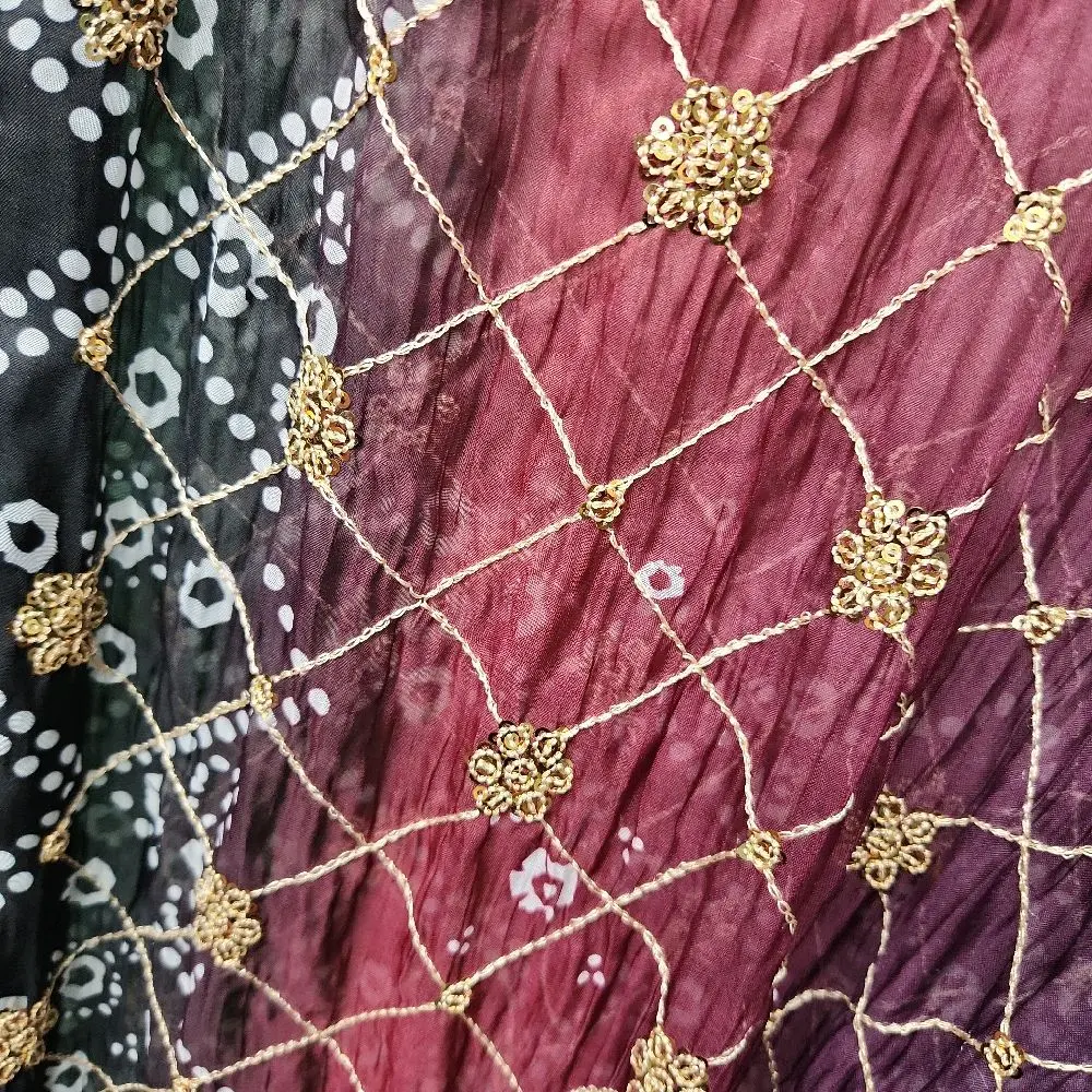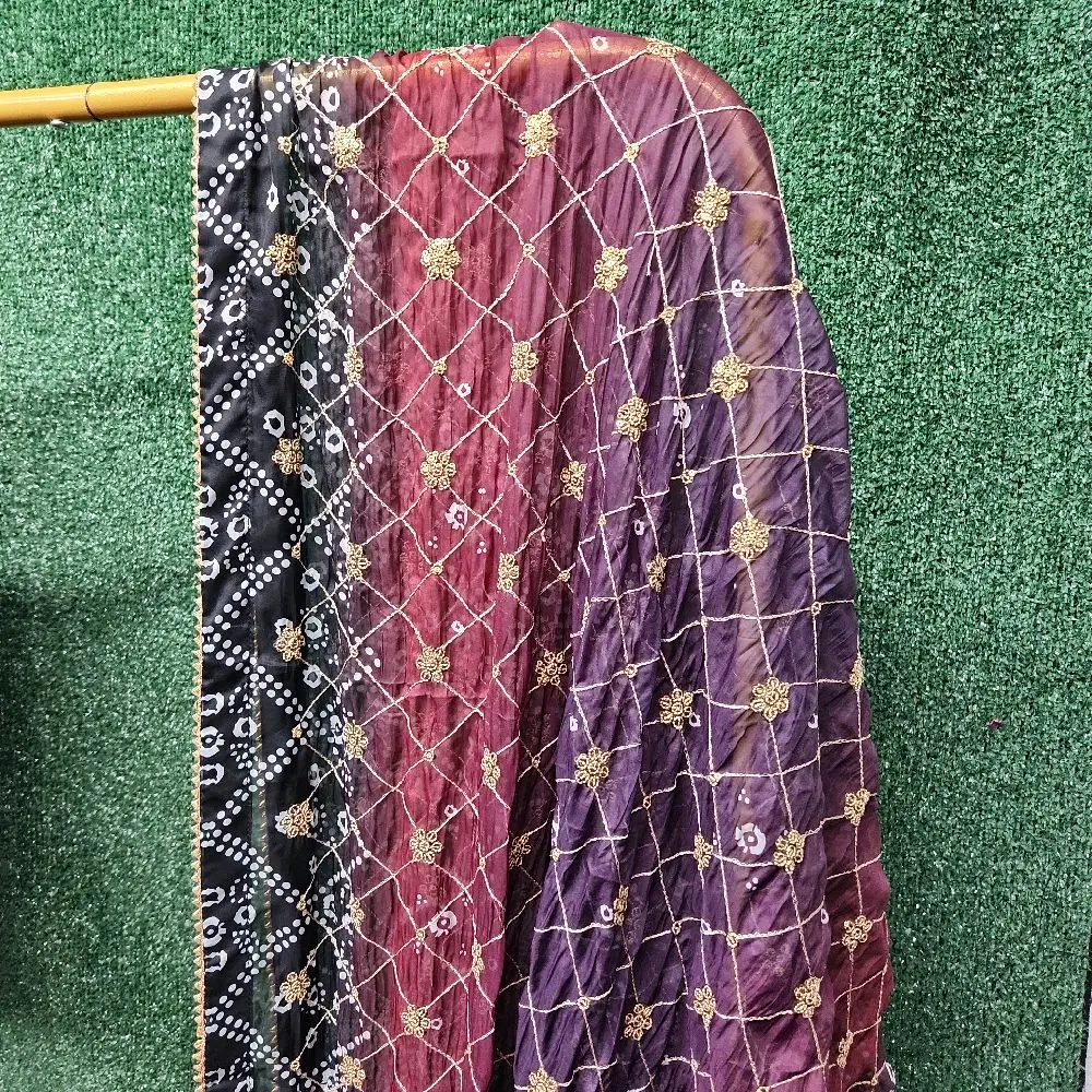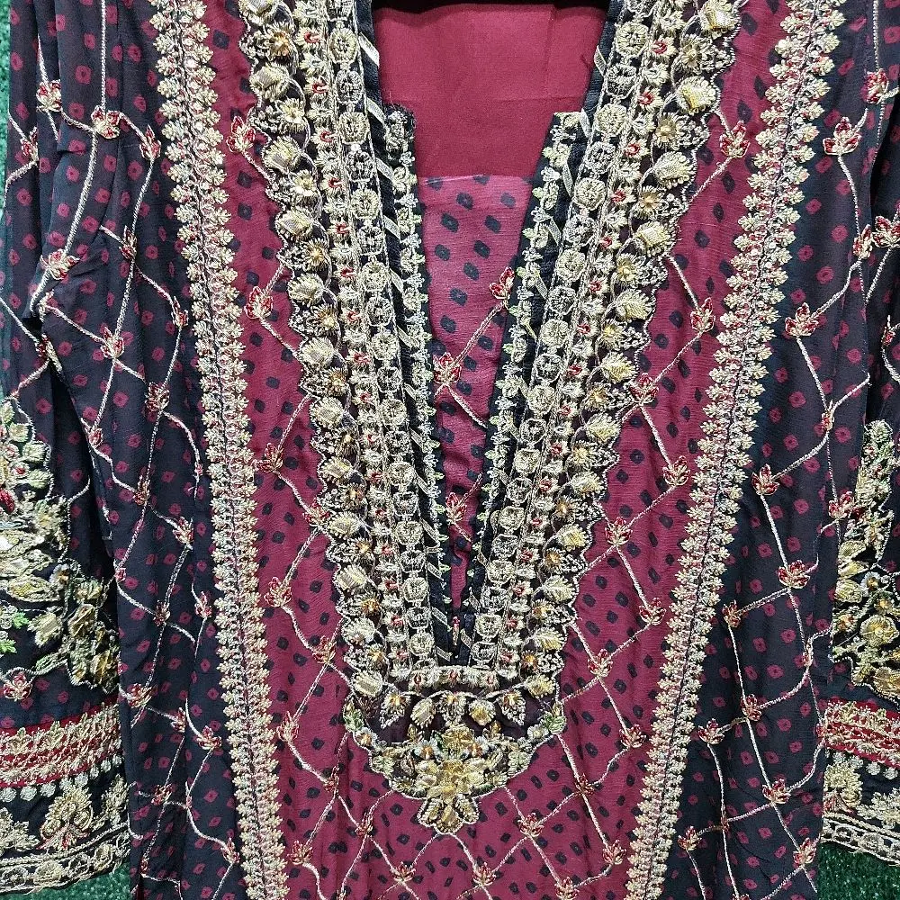 🌟 The set includes three distinct pieces, each designed to complement the others. The chunri print is consistent across all pieces, maintaining a cohesive look. This dress set is perfect for layering or wearing as a complete outfit. It's a practical choice for those who value both style and functionality in their clothing.