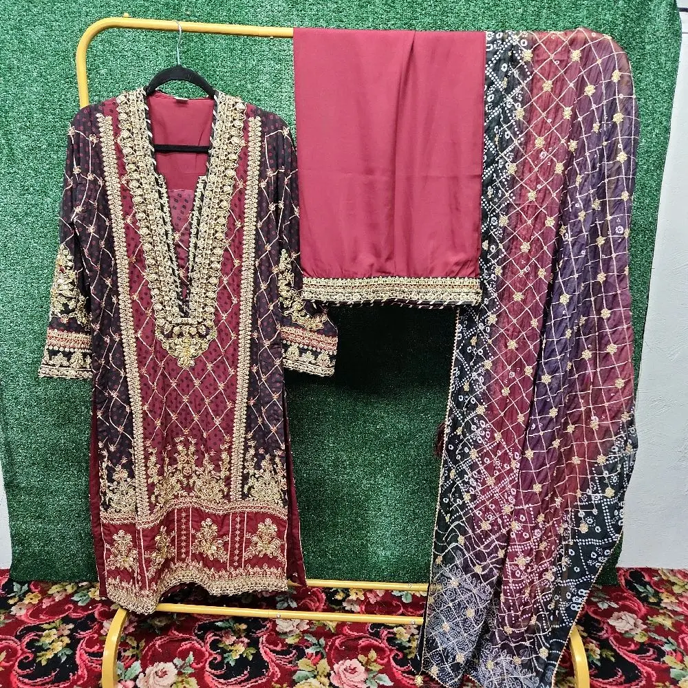 ✨ This dress features a charming chunri print, perfect for any occasion. The three-piece set offers versatility and style. Each piece is ready to wear, ensuring convenience and ease. The chunri print adds a touch of traditional elegance, making it a standout choice. Ideal for those who appreciate cultural aesthetics in their wardrobe.