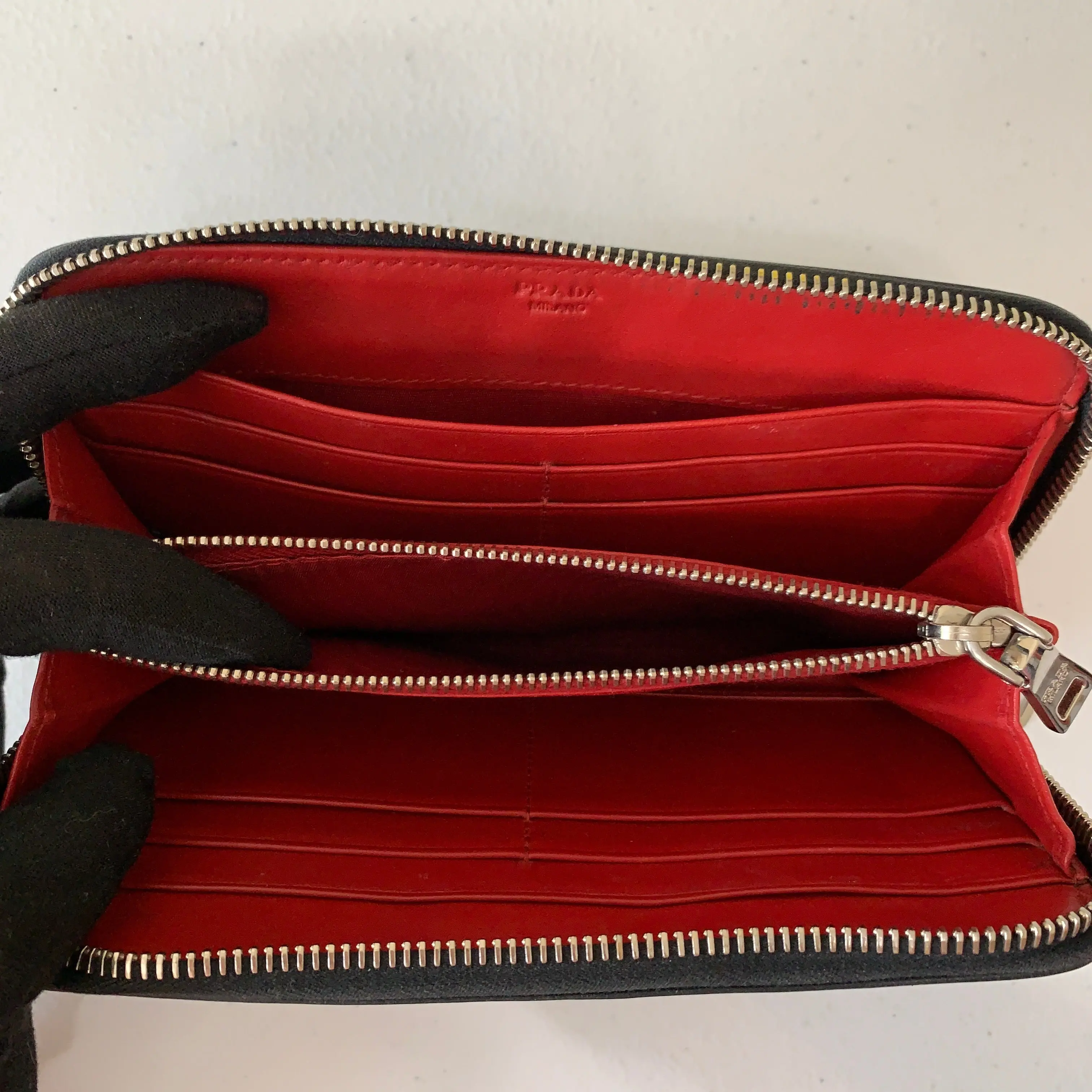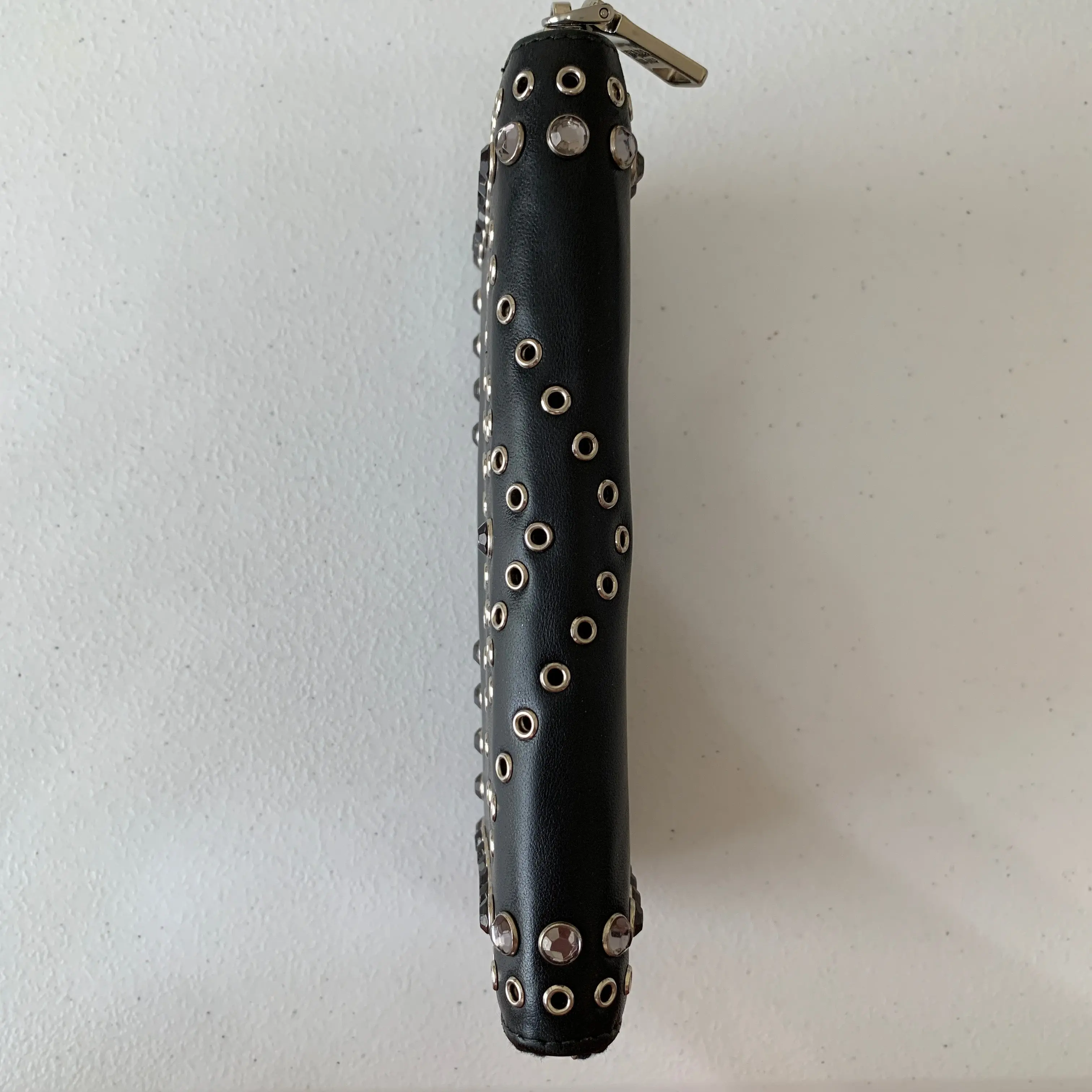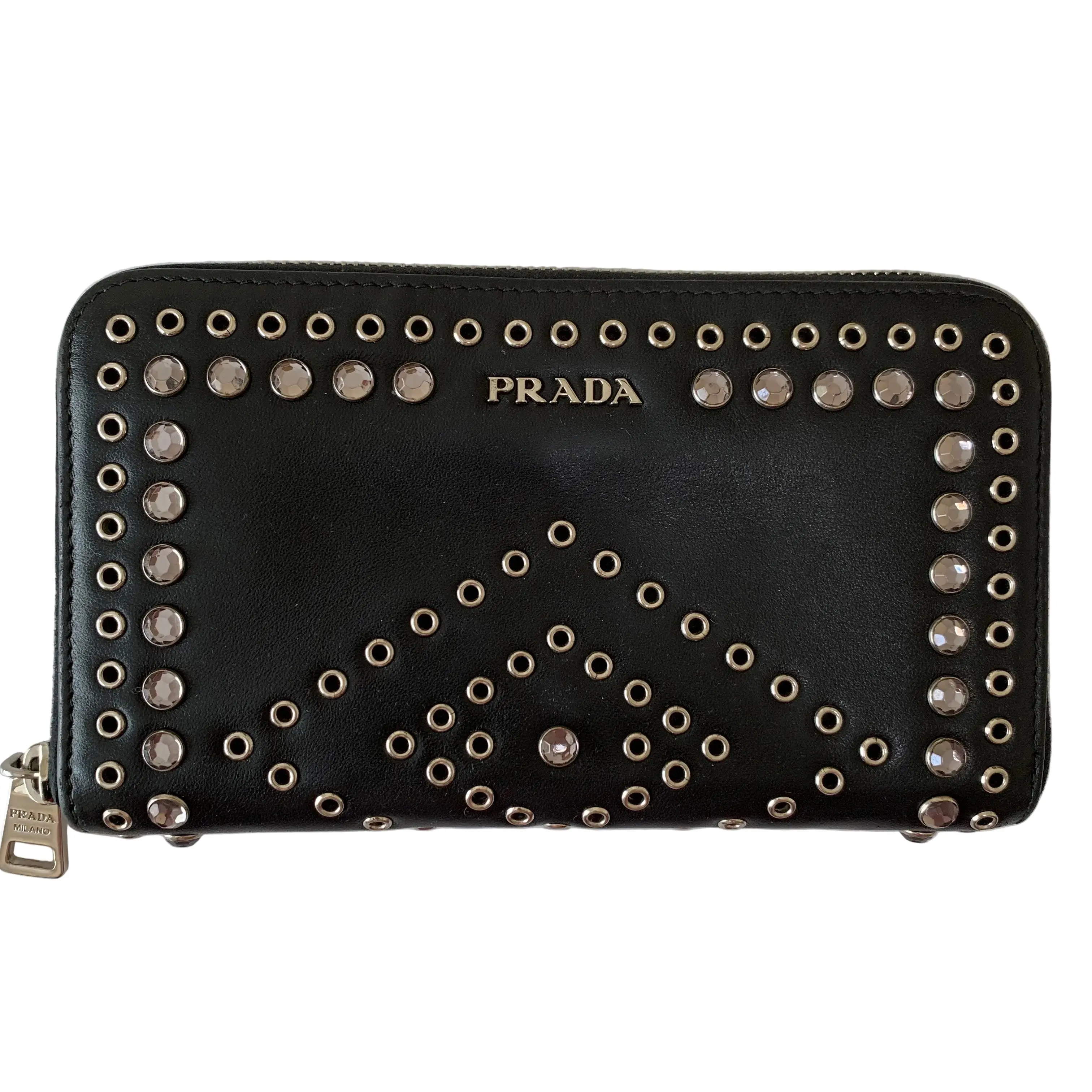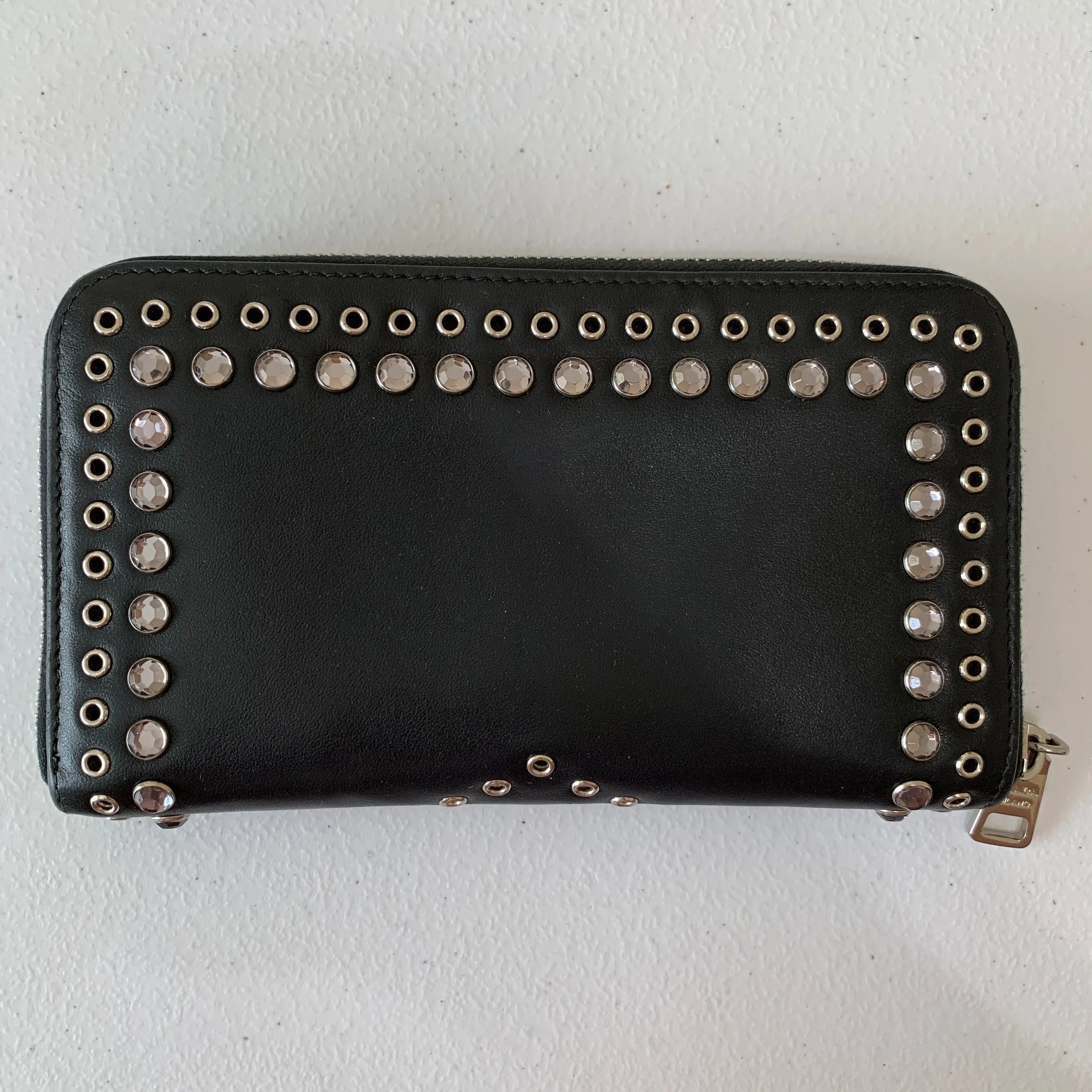 Pre-owned PRADA Wallet Small Leather Goods black leather studded zipper authentic with COA 45x75
