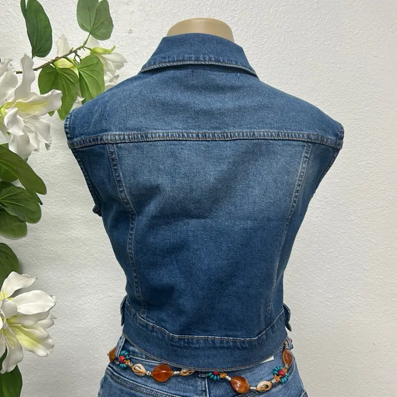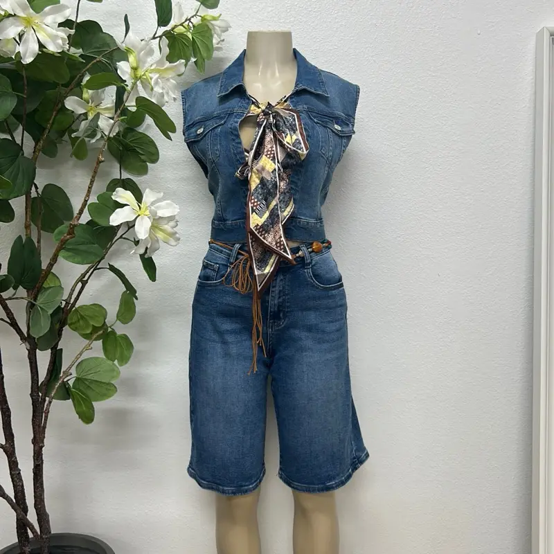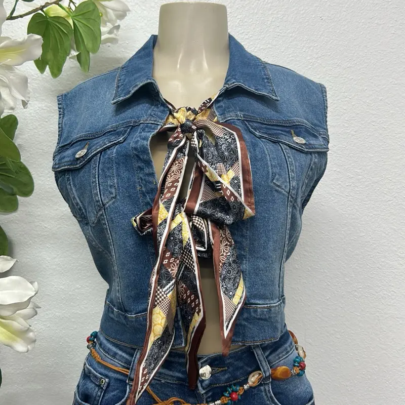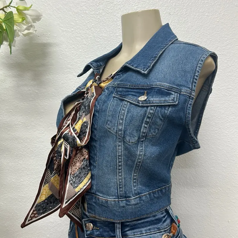 ·Key Features: Denim material for a classic look. Silk bow closure for a stylish twist. Ideal for layering or wearing alone.